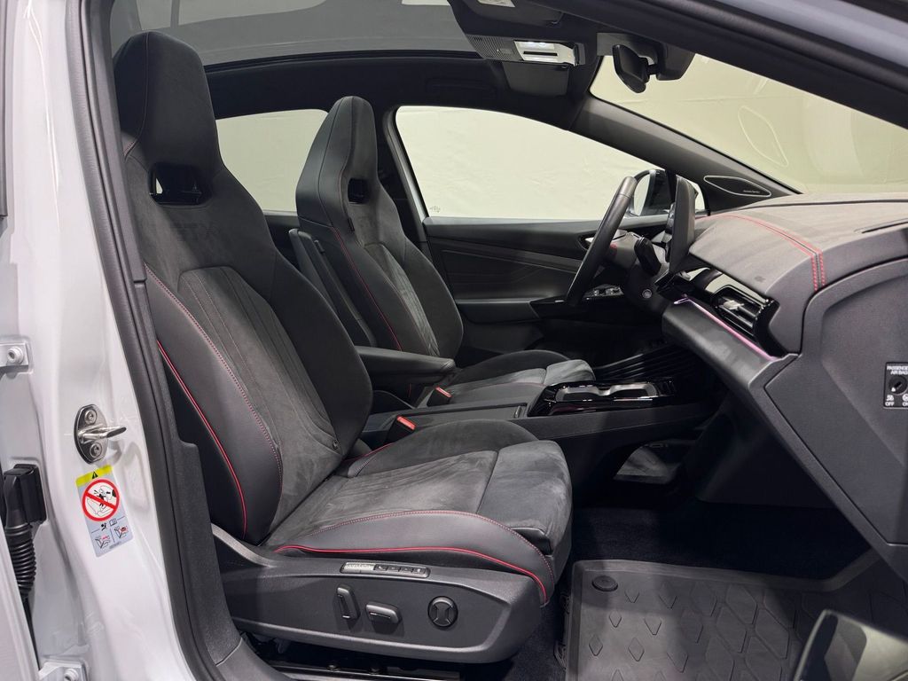 - Polster: Sportlich designter Innenraum mit Sitzen aus Kunstleder in Blau mit orangenen Nähten