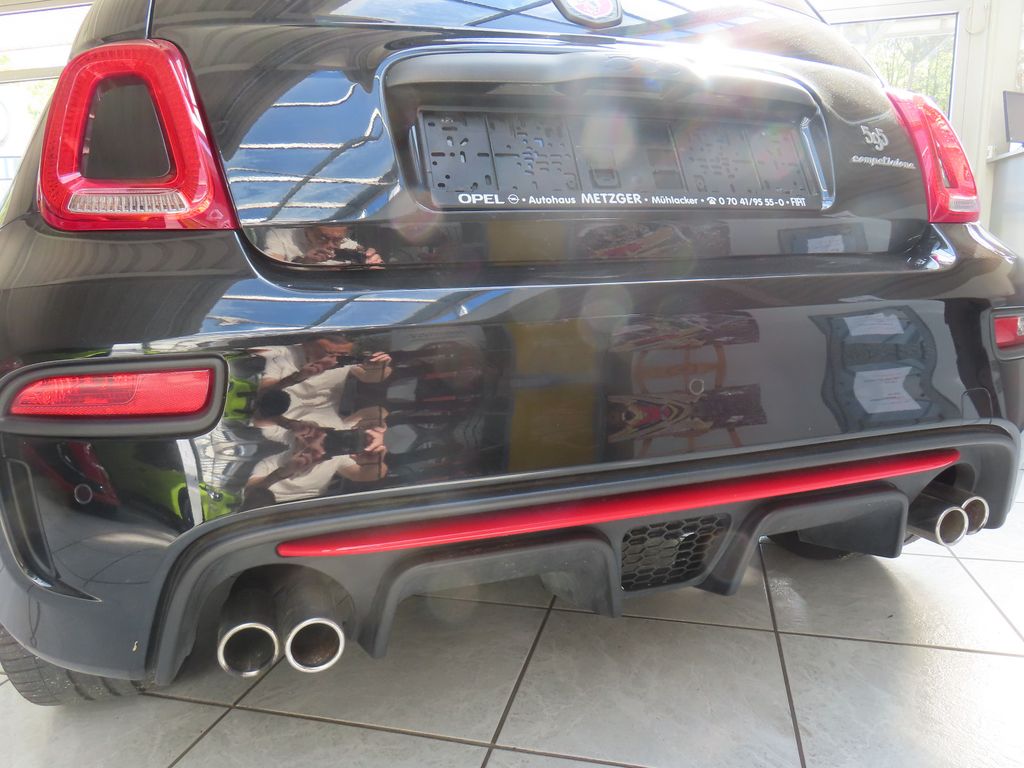 Sonderausstattung:Einparkhilfe hinten, Infotainment-System: UConnect mit MP3-Player, Navigationssystem und DAB Radioempfang (Touchscreen 7"), Kit ESTETICO Abarth (Design Set), LM-Felgen 7x17 (14-Speichen, Formula, Mattschwarz), Metallic-Lackierung, Panorama-Schiebedach elektrisch, Skydome - elektr. Panoramadach mit Sonnenrollo, Urban-Paket