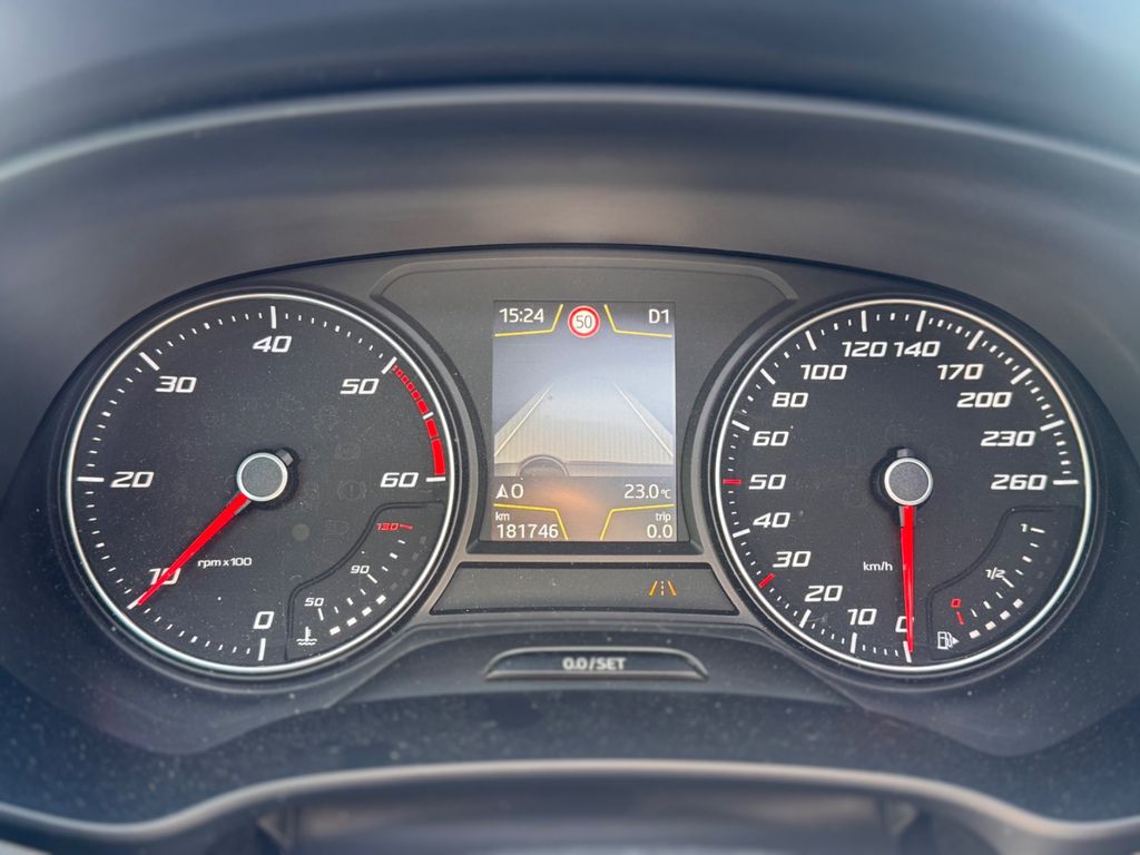 Dieser SEAT Leon in elegantem Schwarzmetallic überzeugt mit einer beeindruckenden Ausstattungsliste, die weit über das Basisniveau hinausgeht. Der 184 PS starke Dieselmotor arbeitet mit einem Automatikgetriebe zusammen und sorgt für ein komfortables Fahrerlebnis. Das Interieur in schwarzem Leder mit Sportsitzen, Panoramaglasdach und Ambiente-Beleuchtung schafft eine hochwertige Atmosphäre. Sicherheitstechnisch ist der Wagen umfassend ausgestattet: Kollisionswarnung, Spurhalteassistent, Verkehrszeichenerkennung sowie ein vollständiges Paket an Parkhilfen inklusive Rückfahrkamera gehören zum Lieferumfang. Das Navigationssystem mit Touchscreen, Bluetooth-Konnektivität und Freisprechanlage sorgen für moderne Vernetzung. Dank vollständiger Servicehistorie und Nichtraucherstatus präsentiert sich das Fahrzeug in gepflegtem Zustand.- 184 PS Dieselmotor mit Automatikgetriebe und Start-Stopp-System
