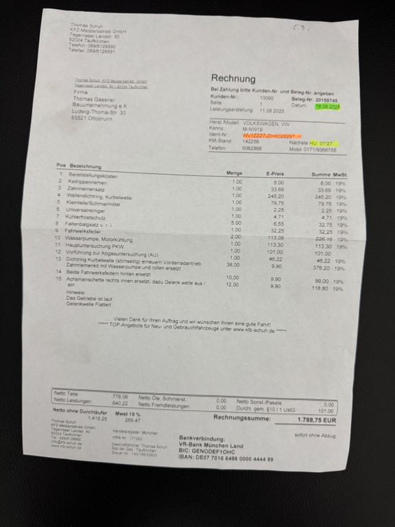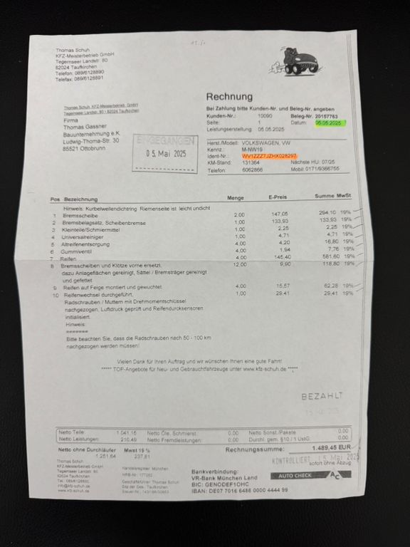 Prohlídka vozidla — 6500 Kč