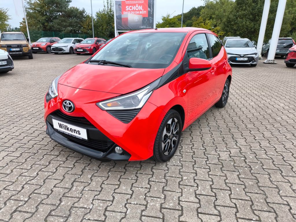 3. Bremsleuchte, Airbag Beifahrerseite abschaltbar, Airbag Fahrer-/Beifahrerseite, Audiosystem: Multimedia Toyota x-touch mit Rückfahrkamera, Außenspiegel elektr. verstell- und heizbar, Außenspiegel lackiert, Außentemperaturanzeige, Bordcomputer, Bremsassistent, Drehzahlmesser, Elektr. Bremskraftverteilung, Fahrassistenz-System: Berganfahrkontrolle (HAC), Frontgrill X-Element, Pianolack, Frontgrill X-Verlängerung, mattschwarz, Gepäckraumabdeckung / Rollo, Heckscheibe heizbar, Heckscheibenwischer, Heckschürze, schwarz matt, Innenausstattung: Anthrazit, Isofix-Aufnahmen für Kindersitz, Karosserie: 5-türig, Kopf-Airbag-System, Lenksäule (Lenkrad) höhenverstellbar, Modellpflege, Motor 1,0 Ltr. - 53 kW KAT, Reifen-Reparaturkit, Reifendruck-Kontrollsystem, Rücksitz geteilt, Rücksitz klappbar, Schadstoffarm nach Abgasnorm Euro 6, Schalt-/Wählhebelgriff Leder, Seitenairbag vorn, Sitz vorn links höhenverstellbar, Smartphone-Integration x-connect (Apple CarPlay und Android Auto), Steckdose (12V-Anschluß) in Mittelkonsole, Stoßfänger Wagenfarbe, Türgriffe außen Wagenfarbe, Türgriffe innen verchromt, Warnanlage für Sicherheitsgurte hinten, Warnanlage für Sicherheitsgurte vorn, Wärmeschutzverglasung getönt, X-business-Paket, X-look-Paket
