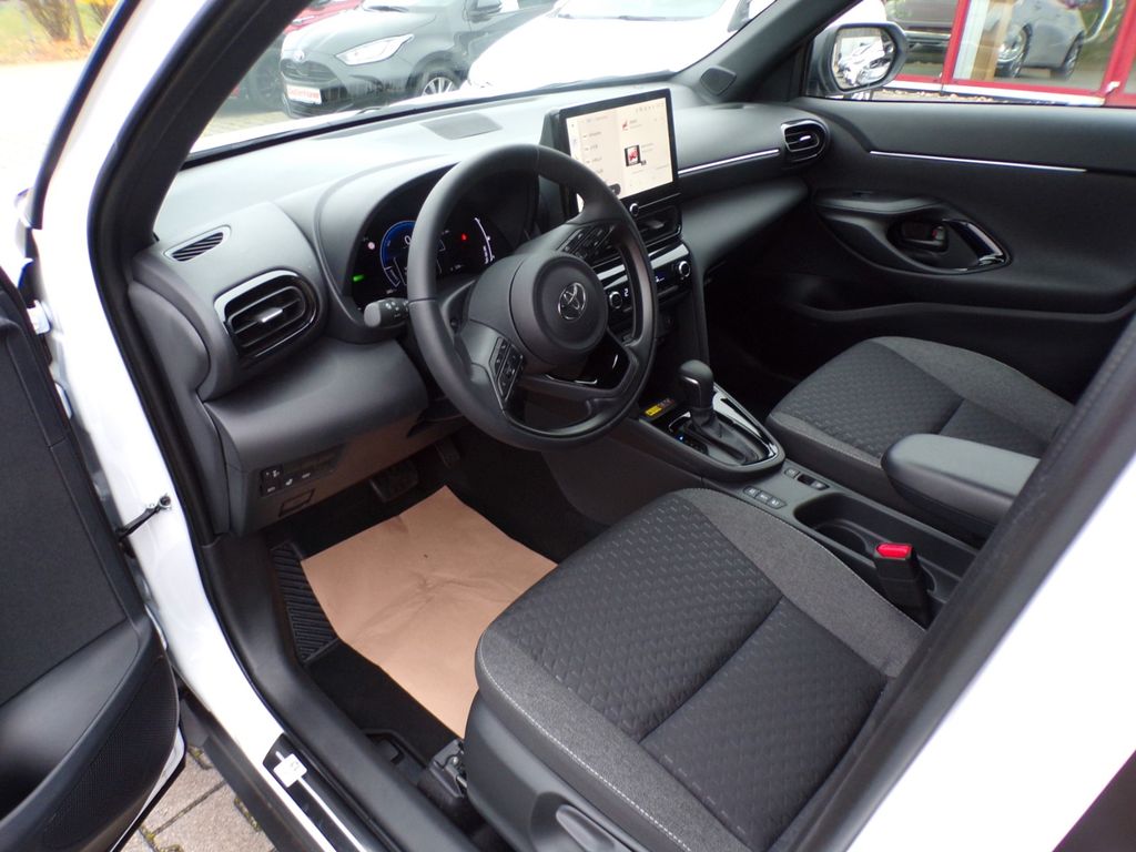 Airbag Fahrer-/Beifahrerseite, Aktive Kopfstützen vorn, Audiobedienung am Lenkrad, Audiosystem: Multimedia Toyota Touch, Autom. Begleitfunktion der Beleuchtung (Follow me home, FMH), Außenspiegel elektr. anklappbar, Außenspiegel elektr. verstell- und heizbar, Bremsassistent, Dachantenne, Dachreling schwarz lackiert, Elektr. Bremskraftverteilung, Fahrassistenz-System: aktiver Spurhalteassistent (Lenkunterstützung), Fahrassistenz-System: Berganfahrkontrolle (HAC), Fahrassistenz-System: Eco-Anzeige für verbrauchsoptimiertes Fahren, Fahrassistenz-System: Fahrassistent proaktiv (PDA), Fahrassistenz-System: Fernlichtassistent (Abblendautomatik Fahrlicht, AHB), Fahrassistenz-System: Kreuzungs-Assistent, Fahrassistenz-System: Müdigkeitserkennungs-Sensor, Fahrassistenz-System: Notlenk-Assistent, Fahrassistenz-System: Pre-Collision-System (PCS), Fahrassistenz-System: Sicherheitssystem Toyota Connect mit automatischem Notruf (eCall), Fahrassistenz-System: Spurhalteassistent (LDA), Fahrassistenz-System: Verkehrszeichenerkennung (RSA), Fensterheber elektrisch vorn + hinten, Heckleuchten LED, Heckspoiler, Hybrid 96 kW (Motor 1,5 Ltr. - 68 kW), Innenraumfilter: Staub- und Pollenfilter mit Aktivkohlefilter, Isofix-Kindersitz-System, Karosserie: 5-türig, Kindersicherung elektr. betätigt, Klimaautomatik, Kopf-Airbag-System, Kopfstützen hinten, Lenksäule (Lenkrad) verstellbar, LM-Felgen, Multimedia Display (10,5 Zoll), Nebelscheinwerfer LED, Park-Assistent mit Rückfahrkamera, Parkbremse elektrisch (EPB), Radstand 2560 mm, Reifen-Reparaturkit, Reifendruck-Kontrollsystem, Rücksitz geteilt, Schadstoffarm nach Abgasnorm Euro 6e, Schalt-/Wählhebelgriff Leder, Seitenairbag vorn, Seitenscheiben hinten und Heckscheibe dunkel getönt (Privacy Glass), Service-System: MyT-Connected Services, Sitz vorn links höhenverstellbar, Sitz vorn rechts höhenverstellbar, Sitzbezug / Polsterung: Stoff, Steckdose (12V-Anschluß) in Mittelkonsole, Stoßfänger Wagenfarbe, Türgriffe außen Wagenfarbe, Verglasung hinten abgedunkelt, Warnanlage für Sicherheitsgurte hinten, Warnanlage für Sicherheitsgurte vorn