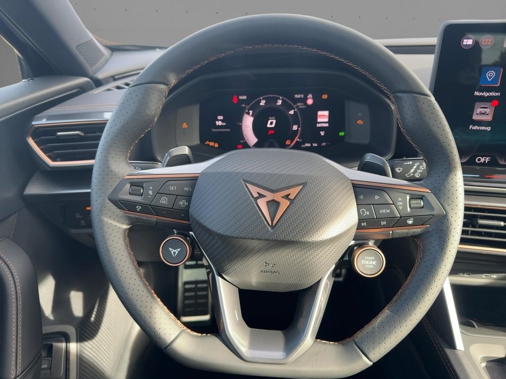 Karosserie: 5-türig; Pre-Crash-System; Verzurrösen Koffer-/Laderaum; Handschuhfach mit LED-Beleuchtung; Preisnachlass-Paket; Radstand Standard; CUPRA Connect Plus - 3 Jahre (Serienumfang mit Navigationssystem); Intelligent Drive DQ (Automatikgetriebe); Titanschwarz - Palomino-Braun; Audio-Navigationssystem mit Touchscreen Farbbildschirm 12,9"; "Edge"-Paket mit SAFE-Verriegelung