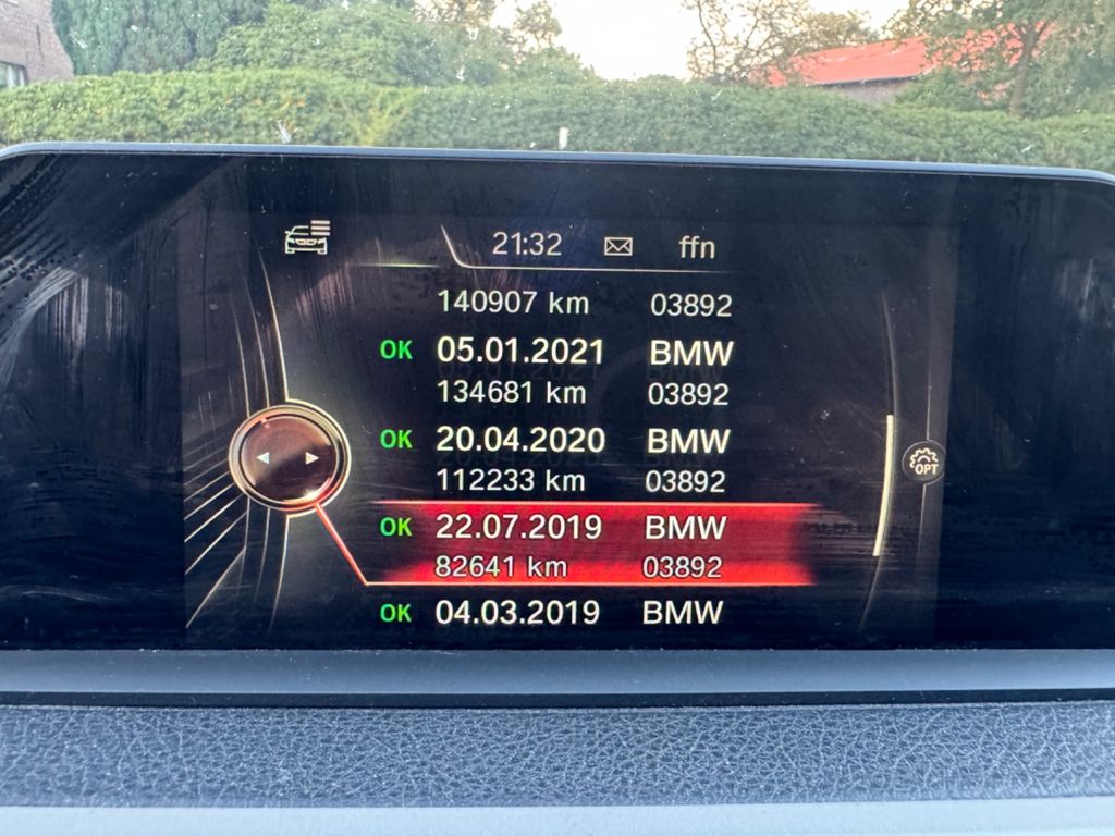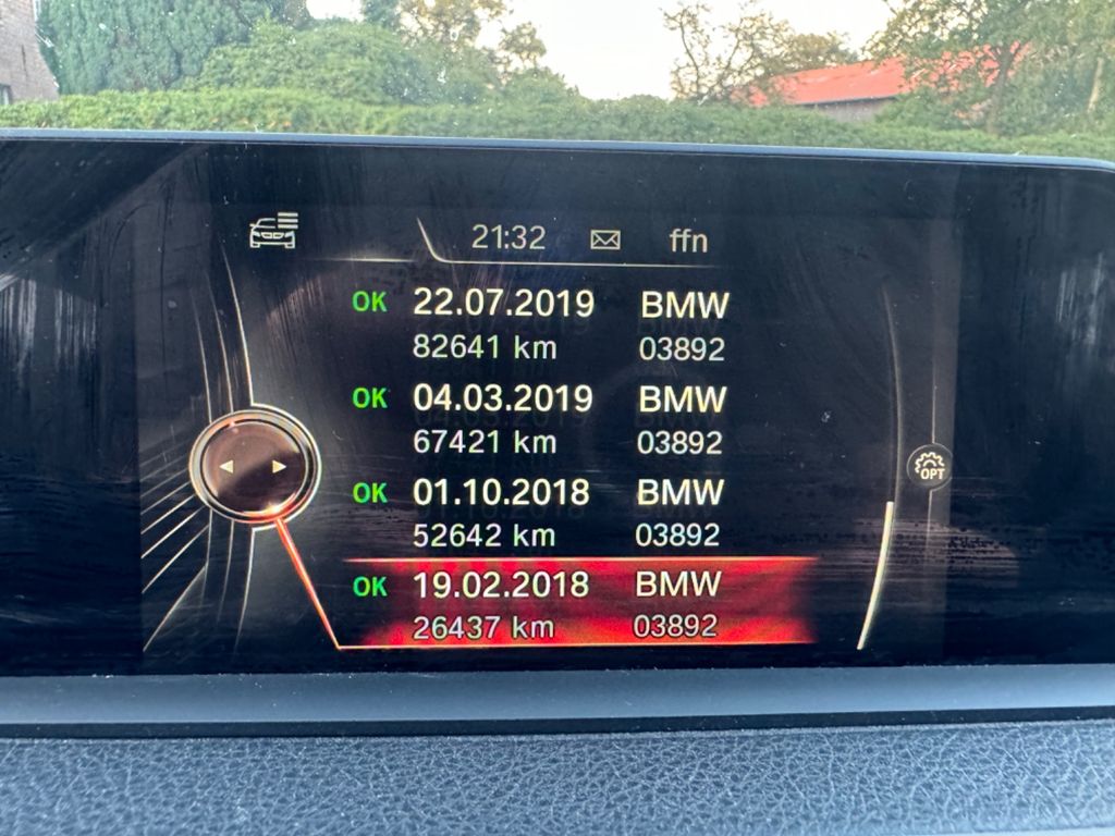 Airbag Beifahrerseite abschaltbar, Airbag Fahrer-/Beifahrerseite, Audiosystem BMW Professional (Radio/CD-Player MP3-fähig), AUX-IN-Anschluss (AUX-IN), Außenspiegel elektr. verstell- und heizbar, Außenspiegel Wagenfarbe, Außentemperaturanzeige, Bordcomputer, Bremsassistent, Check-Control-System, Durchladeeinrichtung (Mittelarmlehne hinten), Dynamische Bremsleuchte, Dynamische Tractions Control (DTC), Fahrassistenz-System: Fahrerlebnisschalter, Farbmonitor (6,5 Zoll), Fernentriegelung Heckklappe, Freisprecheinrichtung Bluetooth mit USB-/Audio-Schnittstelle, Fußmatten Velours, Gepäckraum-Abtrennung (Netz), Gepäckraumabdeckung / Rollo, Getränkehalter, Heckklappenbetätigung automatisch, Heckleuchten LED, Innenausstattung: Interieurleisten Satin-Silber, matt, Isofix-Aufnahmen für Kindersitz, Karosserie: 5-türig, Kopf-Airbag-System hinten, Kopf-Airbag-System vorn, Kopfstützen hinten klappbar, Lenksäule (Lenkrad) mechan. verstellbar, Mittelarmlehne hinten, Modellpflege, Motor 2,0 Ltr. - 110 kW 16V Turbodiesel, Multifunktion für Lenkrad, NOx-Speicherkatalysator (BMW Blue Performance), Personalisierungssystem (Personal Profile), Reifendruck-Kontrollsystem, Schadstoffarm nach Abgasnorm Euro 6, Seitenairbag hinten, Seitenairbag vorn, Service-System: Intelligenter Notruf inkl. TeleServices, Sitzbezug / Polsterung: Stoff Move, Sitze vorn höhen-/neigungsverstellbar, Start-Stop-Knopf, Start/Stop-Anlage (Funktion), Steckdose (12V-Anschluß) zusätzlich, Uni-Lackierung, Wärmeschutzverglasung getönt