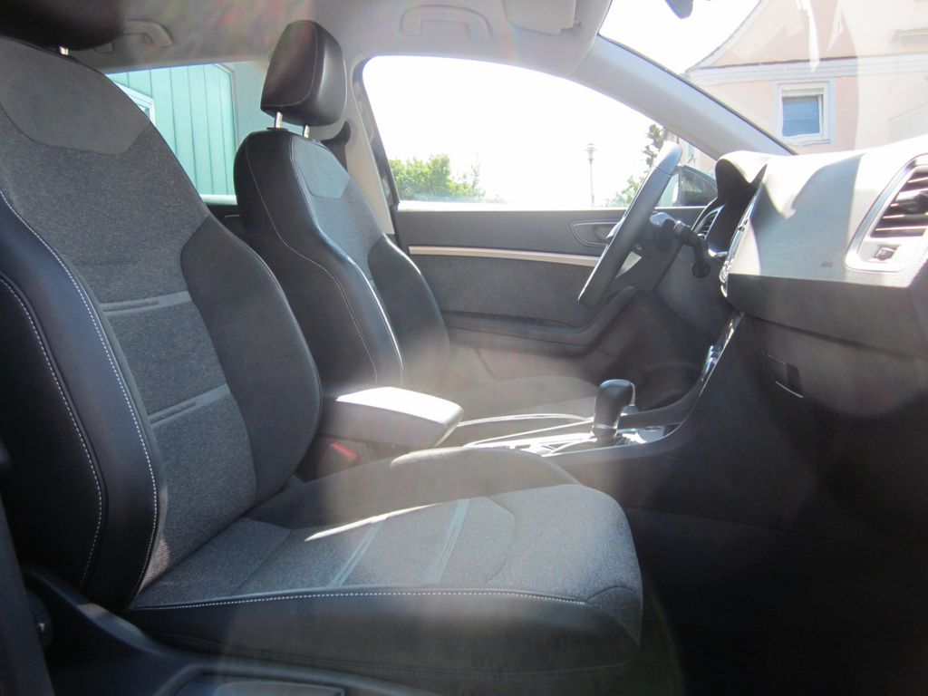 3. Bremsleuchte, 8 Lautsprecher, Ablagetasche an Vordersitzlehnen, Airbag Beifahrerseite abschaltbar, Airbag Fahrer-/Beifahrerseite, Antriebs-Schlupfregelung (ASR), Außenspiegel elektr. verstell-, heiz- und anklappbar mit Spiegelabsenkung, Außenspiegel Wagenfarbe, Blinkleuchten LED in Außenspiegel integriert, Bluetooth-Schnittstelle mit Freisprecheinrichtung integriert, Bordcomputer, Brillenfach, Design-Paket Exterieur, silber, Doppeltonhorn, Einstiegsleisten beleuchtet, Elektron. Querdifferentialsperre (XDS), Fahrassistenz-System: Berganfahr-Assistent (Hill-Holder), Fahrassistenz-System: Fahrprofilauswahl (SEAT Drive Profile), Fahrassistenz-System: Müdigkeitserkennung, Fahrassistenz-System: Spurhalteassistent, Fahrassistenz-System: Umfeldbeobachtungssystem (Front assist) mit City-Notbremsfunktion, Fahrassistenz-System: Verkehrszeichenerkennung, Fensterheber elektrisch vorn + hinten mit Komfortschaltung, Gepäckraumabdeckung / Rollo, Handschuhfach beleuchtet, Heckleuchten LED mit dynamischem Blinklicht, Innenraumlicht-Paket LED, Isofix-Aufnahmen für Kindersitz, Karosserie: 5-türig, Klimaanlage Climatronic 2-Zonen, Knieairbag Fahrerseite, Kofferraumbeleuchtung, Kopf-Airbag-System, Lendenwirbelstütze Sitz vorn links, verstellbar, Lendenwirbelstütze Sitz vorn rechts, verstellbar, Licht- und Sicht-Paket, LM-Felgen, Mittelarmlehne hinten, Mittelkonsole vorn mit Mittelarmlehne, Becherhalter, Ablagebox und Luftausströmer hinten, Modellpflege, Motor 1,5 Ltr. - 110 kW 16V TSI ACT, Nebelscheinwerfer LED mit Abbiegelicht, Notrufsystem, Otto-Partikelfilter (OPF), Parkbremse elektrisch mit Auto-Hold-Funktion, Radstand 2638 mm, Reifen-Reparaturset, Reifenkontroll-Anzeige, Rückfahrkamera, Rücksitzlehne geteilt/klappbar (1/3-2/3), Schadstoffarm nach Abgasnorm Euro 6e, Schalt-/Wählhebelgriff Leder, Scheinwerfer Voll-LED, Schließ-/Startsystem Kessy, SEAT Media-System Plus, Seitenairbag, Seitenscheiben hinten und Heckscheibe abgedunkelt, Sitz vorn links höhenverstellbar, Sitz vorn rechts höhenverstellbar, Sitzbezug / Polsterung: Stoff, Sonnenblende links mit Spiegel (beleuchtet), Sonnenblende rechts mit Spiegel (beleuchtet), Start/Stop-Anlage, Stau-/Ablagefach unter Sitz vorn links, Steckdose (12V-Anschluß) vorn, USB-Ladeanschlüsse (2-fach, Typ C) für 2.Sitzreihe, Verzurrösen Koffer-/Laderaum, Wärmeschutzverglasung