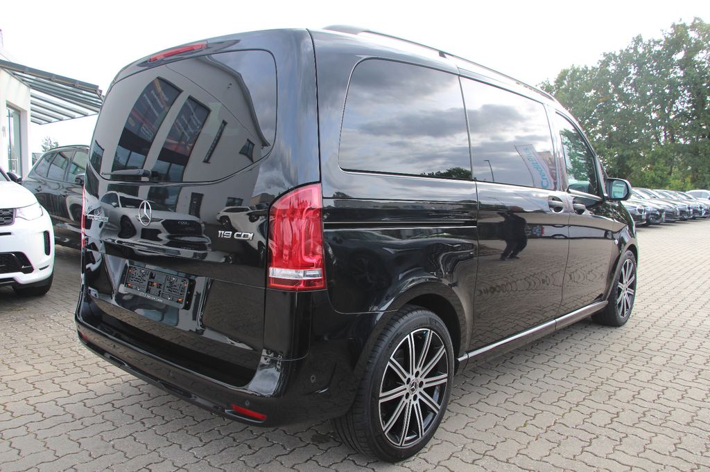 3. Bremsleuchte, Adaptives Bremslicht, Airbag Beifahrerseite, Airbag Fahrerseite, Anfahrhilfe (Berganfahr-Assistent), Anzeige für Waschwasserstand, Armlehnen Fahrgastraum, Auflastung auf 3,1 t, Außenspiegel asphärisch, beide, Außenspiegel elektr. verstell- und heizbar, beide, Außentemperaturanzeige, Befestigungsschienen für Dachträger, Beleuchtung im Haltegriff Fond mit Lesespot, BlueEfficiency-Paket, Bodenbelag: Teppich im Fahrerraum, Bodenbelag: Teppich im Lade-/Fahrgastraum, Bremssystem mit ABS+ASR, Chrom-Paket, Dachverkleidung, Design- und Ausstattungslinie Select, Einschaltautomatik für Fahrlicht, Einstiegsgriff hinten, Einstiegsleuchten, Fahrassistenz-System: Anfahr-Assistent (Berganfahr-Assistent), Fahrassistenz-System: Attention-Assist (Müdigkeitserkennungs-Sensor), Fahrassistenz-System: Pannenmanagement, Fahrassistenz-System: Seitenwind-Assistent, Fenster für hintere Türen / Heckklappe mit Wisch-/Waschanlage, Fenster im Lade-/FG-Raum: - feststehend, hinten, Fenster im Lade-/FG-Raum: - feststehend, vorn links, Fenster im Lade-/FG-Raum: - feststehend, vorn rechts, Frontscheibe mit Scheibenantenne, Fußraumbeleuchtung vorn, Generator 200 A, Getriebe Automatik GTronic - (9-Stufen), Getränkehalter vorn, Gurtstraffer, Haltegriffe A-Säulen, Haltegriffe im Fond, Handschuhfach abschließbar, Harnstofftank (AdBlue): 24 Ltr., Heckklappe mit Verglasung, Heckscheibe heizbar, Heckscheibenwischer, Innen- und Umfeldbeleuchtung, Innenraumfilter: Pollenfilter, Innenverkleidung gehobene Ausführung, Karosserie/Aufbau: Kombi Standard, Karosserie/Aufbau: Kompakt, Kindersicherung, Kombiinstrument mit Pixel-Matrix-Display, Komfortbeleuchtung im Fahrgast-/Laderaum, Kommunikationsmodul (LTE) für digitale Dienste, Kopf-Airbag-System (Windowbag), Kopf-Schulter-Airbag (Thoraxbag) Fahrer-/Beifahrerseite, Lenkrad (Lenksäule mech. verstellbar), Lenkrad mit Multifunktion inkl. Reiserechner, Mercedes-Benz Notrufsystem, Modellpflege, Motor 2,0 Ltr. - 140 kW CDI KAT, Nebelschlussleuchte, PKW-Zulassung, PTC Heater, Radstand 3200 mm, Reifendruck-Kontrollsystem, Rückspiegel innen, Schadstoffarm nach Abgasnorm Euro 6d, Scheibenwischer mit Regensensor, Schiebetür Lade-/Fahrgastraum rechts mit Verglasung, SCR-System (AdBlue-Technologie), Select, Sicherheitsgurt-System mit Warnanlage (Fahrer-/Beifahrerseite), Sitzausstattung: Schnellverriegelung für Sitzschienen-System (3 Schienen), Sitze im Fahrerhaus: Beifahrersitz Komfort, Sitze im Fahrerhaus: Fahrersitz Komfort, Sitze im Lade-/FG-Raum: 1.Reihe, 3er-Sitzbank Komfort, Sitze im Lade-/FG-Raum: 2.Reihe, 3er-Sitzbank Komfort, Sonnenblenden mit Spiegel (beleuchtet), Stoßfänger / Stoßf.-Leiste seitlich + Griff an Heckklappe lackiert, Umfeldleuchte in Heckklappe, Vlies-Batterie 92 Ah, Vorbereitung für DAB Radioempfang, Warmluftkanal zum Lade-/Fahrgastraum, Wartungsintervall-Anzeige Assyst, Wärmeschutzverglasung