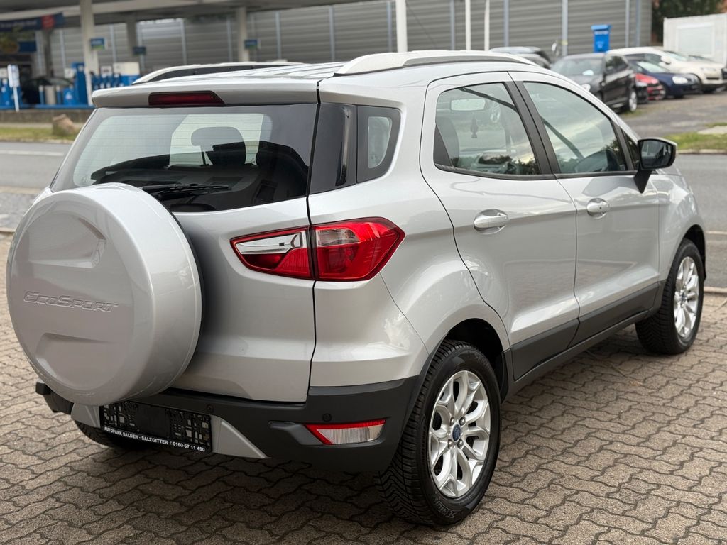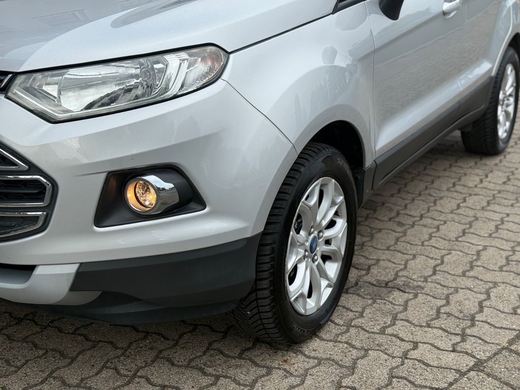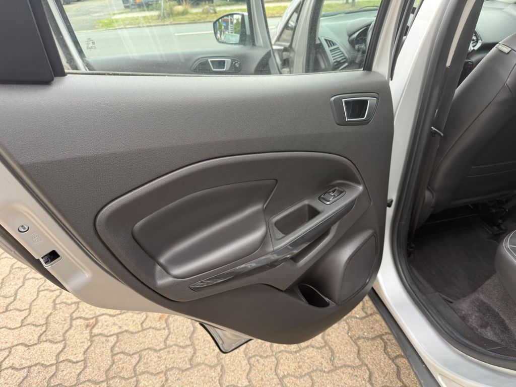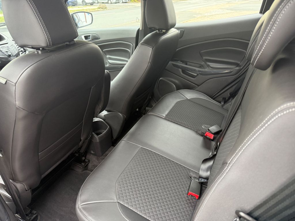 Dieser gepflegte Ford EcoSport präsentiert sich als vielseitiger SUV mit deutscher Zulassung. Der 95 PS starke Dieselmotor mit 1499 ccm Hubraum überzeugt durch seine Wirtschaftlichkeit und erfüllt die Euro 6 Norm. Erstmals zugelassen in 2016, hatte der Fronttriebler nur zwei Vorbesitzer und verfügt über ein lückenloses Scheckheft. Die silberne Metallic-Lackierung harmoniert perfekt mit dem schwarzen Teilledersitzbezug im Innenraum.Für Komfort sorgen die Automatik-Klimaanlage, beheizbare Sitze und Frontscheibe sowie die Regensensor-Automatik und Lichtautomatik. Das Fahrzeug bietet umfassende Sicherheitsausstattung mit Front-, Seiten- und weiteren Airbags, ESP, Berganfahrhilfe und Reifendruckkontrollsystem. Die Einparkhilfe hinten erleichtert das Rangieren im Stadtverkehr.
