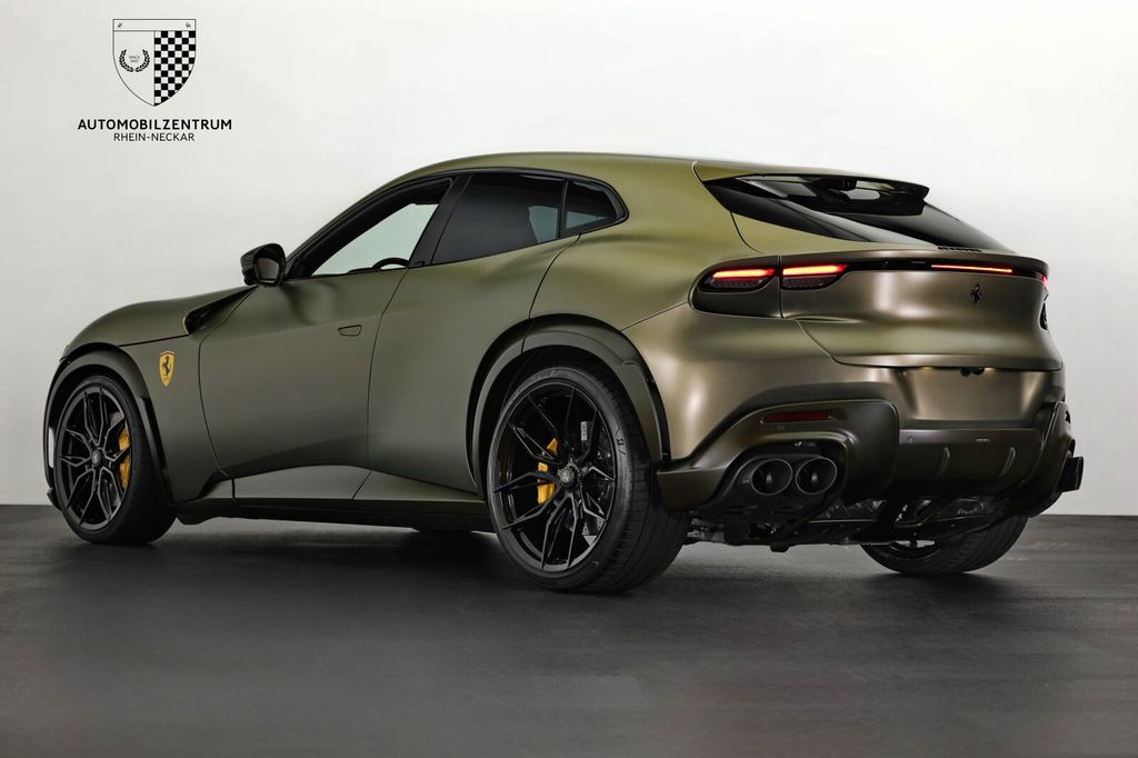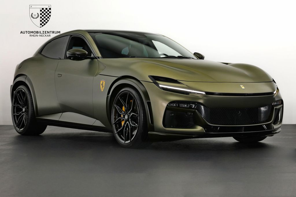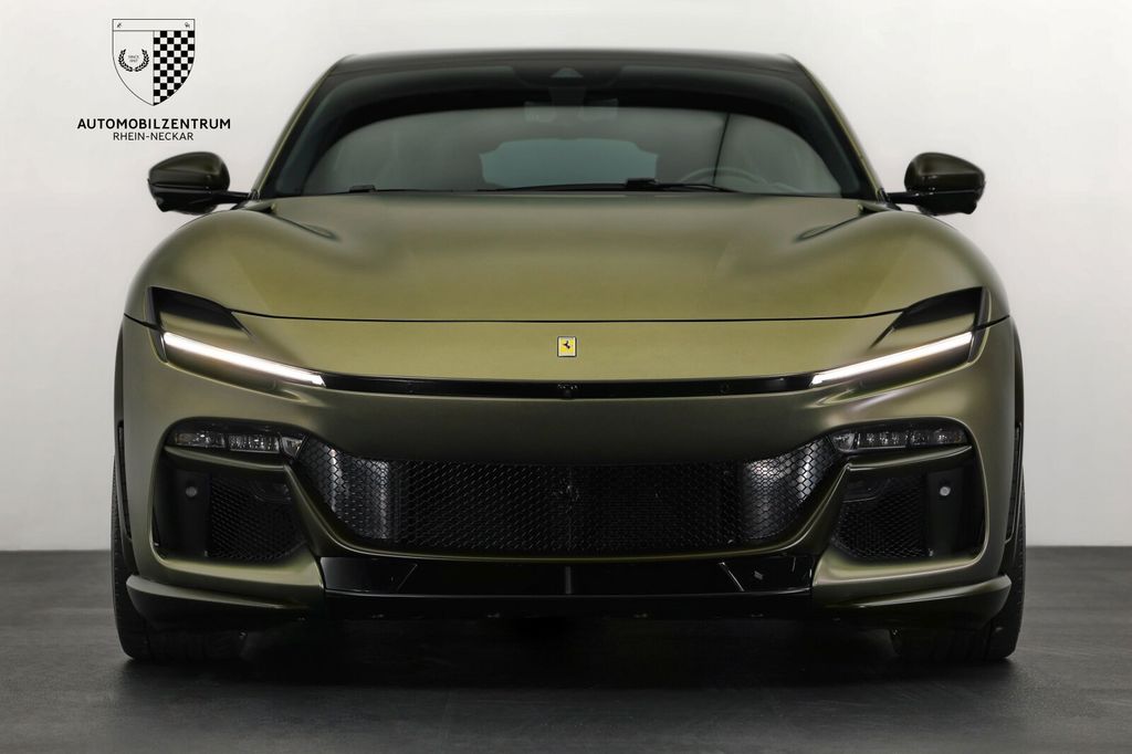 We are delighted to offer you this unique Ferrari Purosangue in Matte Verde Masoni for sale. In addition to its special paintwork and comprehensive special carbon equipment in Matte Verde Militare, the vehicle also features a panoramic roof and ventilated massage seats in the front and rear. In addition, it is equipped with NOVITEC 23" NF11 wheels and a NOVITEC exhaust system, and the entire vehicle is protected with XPEL paint protection film. We look forward to hearing from you!