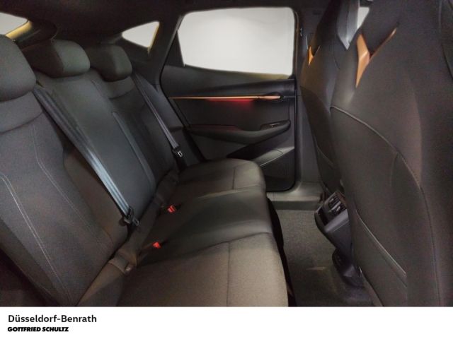 - Weiteres: Mobile Online Dienste Cupra Connect plus, Sonderlackierung Atacama Desert Metallic, Antriebs-Schlupfregelung (ASR), Antriebsart: Allradantrieb, Rücksitzlehne geteilt/klappbar (1/3-2/3), Außenspiegel elektr. verstell-, heiz- und anklappbar mit Spiegelabsenkung und Welcome Light, Notrufsystem, Rückfahrkamera, USB-Schnittstelle vorn (2-fach, Typ C), Heckklappe/-Deckel elektr. betätigt (öffnen + schliessen, sensorgesteuert), Seitenairbag vorn mitte (Central Airbag), Schließ-/Startsystem Kessy Advanced, Isofix-Aufnahmen für Kindersitz an Beifahrersitz und Rücksitz (inkl. i-Size-Kindersitze), Lenkrad heizbar (CUPRA Supersport, Leder) mit Multifunktion und Schaltfunktion, Heckleuchten Voll-LED mit Lichtband (Infinite Light), Akustischer Fußgängerschutz, Außensound (e-sound / AVAS), Radstand Standard, HV-Batterie 82 kWh brutto / 77 kWh netto, Fahrassistenz-System: Spurhalteassistent Plus inkl. Travel Assist, Emergency Assist und Stauassistent, Audio-Navigationssystem mit Touchscreen Farbbildschirm 15, Fahrassistenz-System: Remote Parklenkassistent (Remote Parking Assistant, RPA), Schriftzug auf der Heckklappe in Dark Chrome, Sitzbezug / Polsterung: Stoff Soul Black, Türgriffe innen Copper, LM-Felgen, Elektromotor (System: 250 kW) hinten (EDFA), Anti-Blockier-System (ABS), Kopf-Airbag-System, Reifenkontroll-Anzeige, Seitenairbag, Ambiente-Beleuchtung LED, Licht- und Regensensor, Airbag Fahrer-/Beifahrerseite, Mittelkonsole vorn mit Mittelarmlehne, Becherhalter, Ablagebox und Luftausströmer hinten, Parkbremse elektrisch mit Auto-Hold-Funktion, Full Link (MirrorLink, Apple CarPlay und Android Auto), Matrix-LED-Scheinwerfer mit LED-Signatur, USB-Ladeanschlüsse (2-fach, Typ C) für 2.Sitzreihe, Gepäckraumbeleuchtung (LED), Seitenscheiben ab 2.Sitzreihe und Heckscheibe dunkel getönt (Privacy Glass), 12V-Steckdose im Laderaum, Adaptive Fahrwerksregelung (DCC), Autom. Distanzregelung (ACC / PCC) mit vorausschauender Geschw.-Regelung, Beifahrerairbag abschaltbar, Bluetooth Audio-Streaming, Bluetooth-Schnittstelle mit Freisprecheinrichtung, Climatronic 3-Zonen, Diebstahl-Warnanlage mit Innenraumüberwachung und Abschleppschutz, Elektromotor 250 kW (cont. 77 kW, Dual-Elektromotor), Elektron. Stabilitätskontrolle (ESC), Fahrprofilauswahl (CUPRA Drive Profile), Fensterheber elektrisch vorn und hinten mit Komfortschaltung, Fußraumbeleuchtung LED, Induktionsladeschale für Smartphone, Innenspiegel mit Abblendautomatik, Intelligent Park Assist (IPA), Intelligenter Parkassistent inkl. trainiertem Parken, Kombiinstrument digital (virtual cockpit), Mittelarmlehne hinten, Müdigkeitserkennung, Pedale Aluminium-Design, Pre-Crash-System, Progressivlenkung, Radioempfang digital (DAB+), Schnellladevorrichtung (CCS-Ladedose), Service-System: Intelligente Fahrzeugvernetzung (Car2X), Sitzhöhenverstellung, Sitzhöhenverstellung Fahrersitz, Sport-Schalensitze vorn, Totwinkel-Assistent mit Auspark-Assistent, Spurwechselassistent und Ausstiegswarnung, Umfeldbeobachtungssystem (Front assist) mit City-Notbremsfunktion, Verkehrszeichenerkennung
