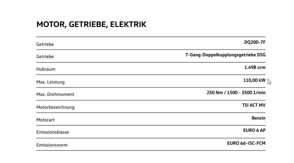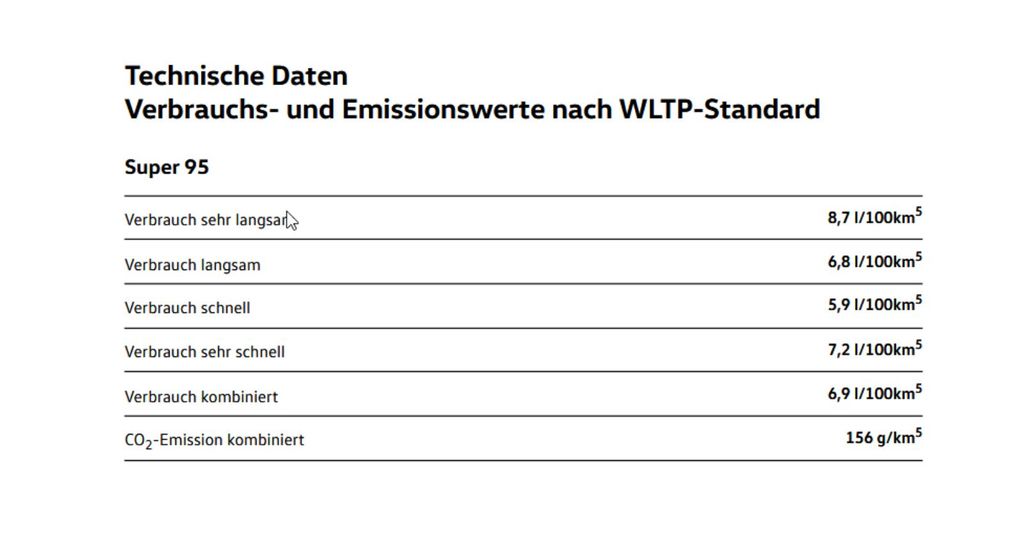 - Spotřeba (komb.) l/100 km