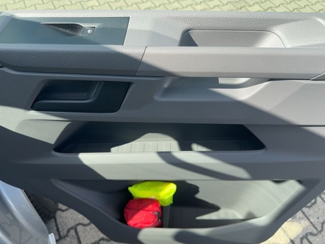 Außenspiegel, elektrisch einstell- und beheizbar; Außenspiegel rechts, konvex; Außenspiegel links, konvex; 2 Funkklappschlüssel; Seitenfenster vorne und hinten, im Lade-/Fahrgastraum, links; Außenspiegelgehäuse und Türgriffe in schwarz; Heckklappenschließung ohne Entriegelungsfunktion von innen; Heckklappe mit Fensterausschnitt und Zuziehhilfe; Schriftzug "Transporter" am Kotflügel, ohne Schriftzug am Heck; Kühlerschutzgitter, unlackiert, mit zwei Chromleisten; Seitenfenster vorn und hinten, im Lade-/Fahrgastraum, rechts; Zentralverriegelung mit Funkfernbedienung und Innenbetätigung; Seitenscheiben vorn in Wärmeschutzglas, Seitenscheiben hinten und Heckscheibe abgedunkelt