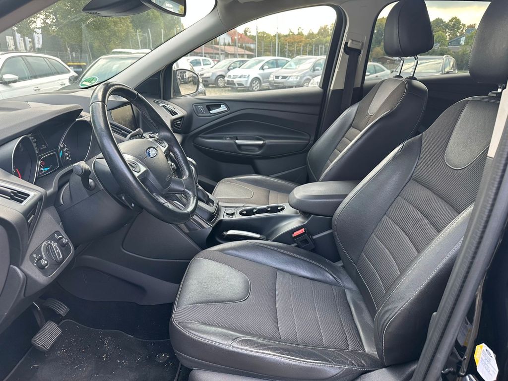 Dieser gepflegte Ford Kuga aus dem Jahr 2016 präsentiert sich in elegantem Schwarz-Metallic und überzeugt durch seine umfangreiche Ausstattung. Der Allradantrieb in Kombination mit dem 150 PS starken Dieselmotor (Euro 6) und Automatikgetriebe bietet sowohl Fahrsicherheit als auch Fahrkomfort. Mit nur einem Vorbesitzer und lückenloser Servicehistorie ist dieses Fahrzeug besonders vertrauenswürdig. Die 2-Zonen-Klimaautomatik, beheizte Sitze und beheizte Frontscheibe sorgen für angenehmes Klima zu jeder Jahreszeit. Praktische Features wie die elektrische Heckklappe, Keyless-Entry und das Winterpaket erhöhen den Alltagsnutzen dieses vielseitigen Vans. Die Parksensoren vorne und hinten erleichtern das Rangieren in engen Parklücken.- Allradantrieb mit 150 PS Dieselmotor und Automatikgetriebe