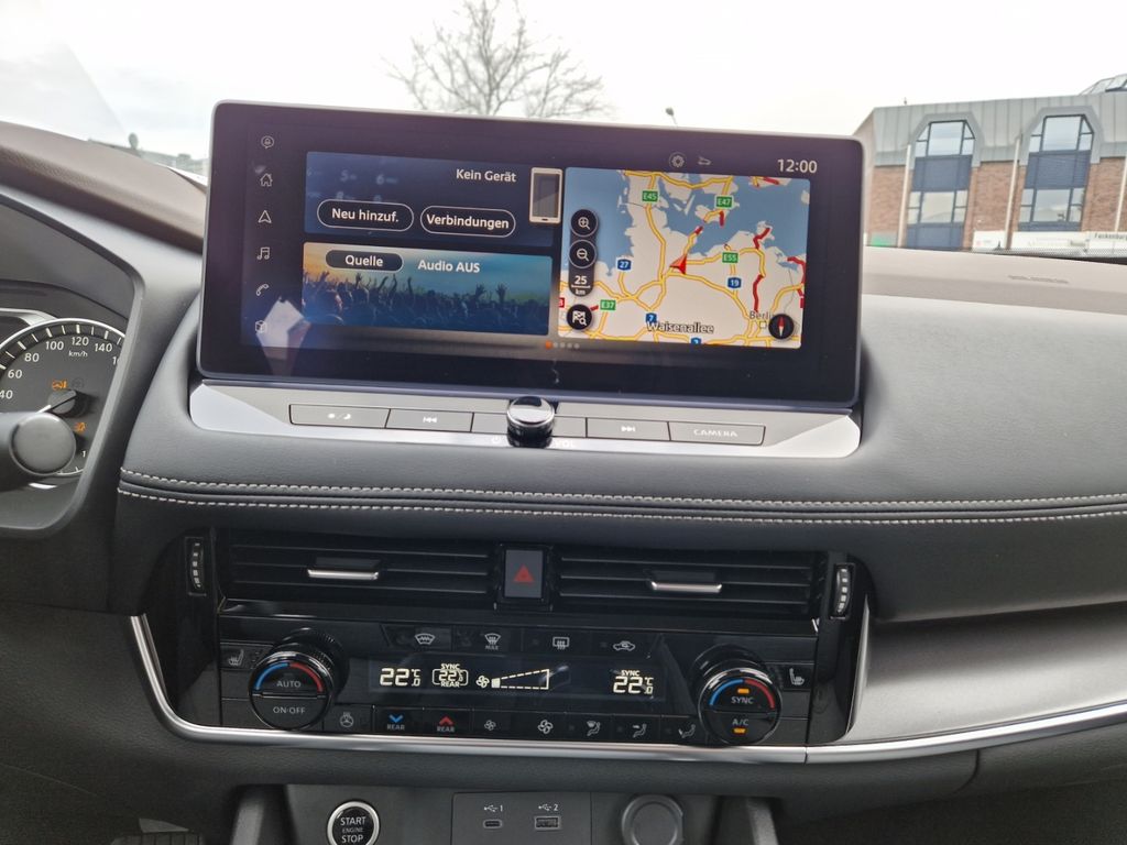 - Weiteres: Reifendruck-Kontrollsystem, Sitzbezug / Polsterung: Stoff, Rückfahrkamera, Lenksäule (Lenkrad) höhen-/längsverstellbar, Mittelarmlehne hinten mit Getränkehalter, Scheinwerfer LED, Schließ-/Startsystem intelligent key, Heckleuchten LED, Getriebe Automatik stufenlos - X-Tronic-CVT, Einparkhilfe hinten, Einparkhilfe vorn, LM-Felgen, Schadstoffarm nach Abgasnorm Euro 6d, Fahrmodusschalter, Seitenairbag vorn mitte (Center-Airbag), Lackierung Solid White, Mittelkonsole mit Armlehne und Staufach, Scheinwerfer-Reinigungsanlage (SRA), Frontscheibe heizbar, Sonnenschutzrollo an Türscheiben hinten, Around View Monitor (360° Umgebungsansicht), Innenraumfilter: Pollenfilter, Touchscreen-Farbdisplay (12,3 Zoll), Familien-Paket, ConstructionTimeMapping, Airbag Fahrer-/Beifahrerseite, Anti-Blockier-System (ABS), Tagfahrlicht LED, Seitenairbag vorn, Start-Stop-Knopf, Außenspiegel elektr. verstell- und heizbar, Kopf-Airbag-System, Rücksitz geteilt/klappbar, Licht- und Regensensor, Service-System: Nissan Connect Services, 12V-Steckdose, 12V-Steckdose im Laderaum, aktiver Spurhalteassistent, mit korrigierendem Bremseingriff, Antriebsart: Frontantrieb, Auffahrwarnsystem (Forward Collision Warning, FCW), Außenspiegel elektr. anklappbar, Ausstattungs-Paket: Nissan Connect Navigationssystem, Auto-Hold-Funktion, Autonomer Notbrems-Assistent, Berg-Anfahr-Assistent, Bluetooth-Schnittstelle, Dachantenne im Haifischflossen-Design, Diebstahl-Warnanlage, Elektr. Bremskraftverteilung (EBD), Elektron. Stabilitäts-Programm, Fensterheber elektrisch vorn und hinten, Fernlichtassistent, Freisprechanlage Bluetooth, Handschuhfach beleuchtet, Innenspiegel mit Abblendautomatik, Instrumentenanzeige TFT-Farbdisplay (7 Zoll), Isofix-Aufnahmen für Kindersitz, Kamerasystem Around View, Keyless-Entry, Klimaautomatik 3-Zonen, Lederlenkrad, Lendenwirbelstütze elektr. verstellbar, Lenkrad heizbar, Leseleuchten vorn und hinten, Mild-Hybrid 120 kW (Motor 1,5 Ltr. - 120 kW VC-T MHEV), Motor 1,5 Ltr. - 120 kW VC-T MHEV, Müdigkeitserkennungs-Sensor, Navigationssystem, Parkbremse elektrisch, Premium-Lackierung Uni, Querverkehrs-Assistent Heck, Radioempfang Digital (DAB), Service-System: Google Services, Sicherheitssystem ERA GLONASS mit automatischem Notruf, Sitzheizung hinten (2.Sitzreihe), Sitzheizung vorn, Sitzhöhenverstellung Fahrersitz, Smartphone Schnittstelle, Sprachbediensystem Spracherkennung, Start/Stop-Anlage, Totwinkel-Assistent, USB-Anschluss im Fond, Verkehrszeichenerkennung, BARPREIS!