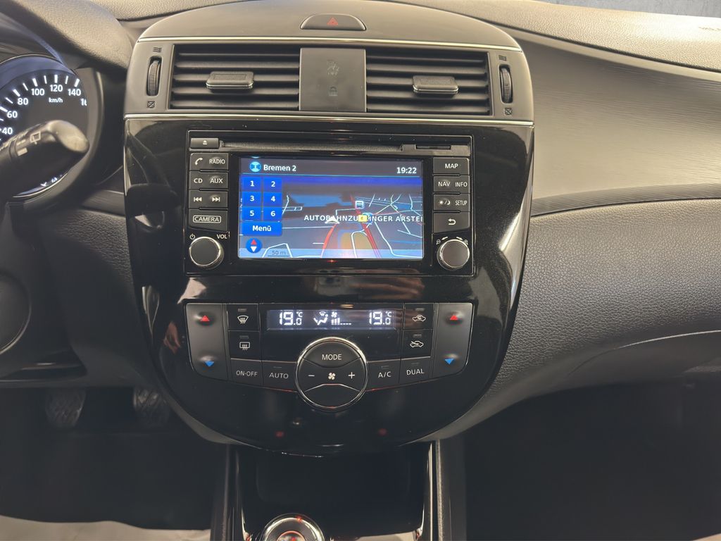 3. Bremsleuchte, Airbag Beifahrerseite abschaltbar, Airbag Fahrer-/Beifahrerseite und Seitenairbag vorn, Audio-/Bordcomputerbedienung am Lenkrad, Ausstattungs-Paket: Nissan Connect, Automatische Fahrlichtschaltung, Außenspiegel elektr. verstellbar, Außenspiegel heizbar, Außenspiegel Wagenfarbe, Blinkleuchte in Außenspiegel integriert, Bordcomputer, Bremsassistent (Nissan Brake-Assist), Fahrassistenz-System: Autonomer Notbrems-Assistent, Fahrassistenz-System: Kurvenbremskontrolle (Aktive Spurkontrolle), Fahrer-Informations-System (FIS) mit Farbdisplay, Fensterheber elektrisch vorn + hinten, Fernentriegelung Tankklappe, Frontscheibe Verbundglas, Gepäckraumabdeckung / Rollo, Getränkehalter hinten, Getränkehalter vorn, Gurtstraffer, Handschuhfach beleuchtet, Heckscheibe heizbar, Innenspiegel mit Abblendautomatik, Isofix-Aufnahmen für Kindersitz, Karosserie: 5-türig, Kindersicherung, Klimaautomatik 2-Zonen, Kopf-Airbag-System, Kopfstützen vorn und hinten verstellbar, Lendenwirbelstütze Sitz vorn links und rechts, Lenksäule (Lenkrad) höhen-/längsverstellbar, Leseleuchte vorn, Luftdüsen hinten, Mittelarmlehne hinten, Mittelarmlehne vorn verschiebbar, Motor 1,5 Ltr. - 81 kW Turbodiesel KAT, Nebelschlussleuchte, Reifen-Reparaturset, Reifendruck-Kontrollsystem, Rücksitz geteilt/klappbar, Schadstoffarm nach Abgasnorm Euro 6, Schalt-/Wählhebelgriff Leder, Schaltpunktanzeige, Scheibenwischer mit Intervallschaltung, Sitz vorn links höhenverstellbar, Sitz vorn rechts höhenverstellbar, Sitzbezug / Polsterung: Teilleder, Sonnenblenden mit Spiegel, Start/Stop-Anlage, Steckdose (12V-Anschluß) in Mittelkonsole, Türgriffe innen verchromt, Verglasung hinten abgedunkelt, Wärmeschutzverglasung mit UV-Schutz.