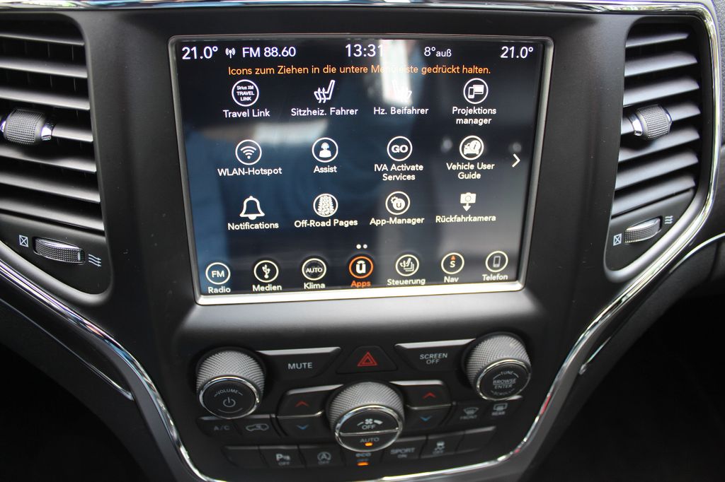 Airbag Fahrer-/Beifahrerseite, Aktive Kopfstützen, Anhänger-Stabilisierungs-Programm, Antriebs-Schlupfregelung (ASR), Audiobedienung am Lenkrad, Automatische Fahrlichtschaltung / Lichtsensor, Außenspiegel elektr. anklappbar, Außenspiegel elektr. verstell- und heizbar, beide, Außenspiegel mit Abblendautomatik, Außenspiegel Wagenfarbe, Bordcomputer, Bremsassistent, Dachreling verchromt, Einstiegsleisten (verchromt), Elektron. Traktionskontrolle, Fahrassistenz-System: Überschlag-Schutzsystem (ERM), Fensterheber elektrisch vorn + hinten, Freisprechanlage UConnect (mit Bluetooth-Schnittstelle), Gepäckraumabdeckung / Rollo, Innenspiegel mit Abblendautomatik, Isofix-Aufnahmen für Kindersitz, Karosserie: 5-türig, Klimaautomatik 2-Zonen, Knieairbag Fahrerseite, Komfortsitze, Kopf-Airbag-System (Windowbag) vorn + hinten, Lendenwirbelstütze Sitz vorn links, Lendenwirbelstütze Sitz vorn rechts, Lenksäule (Lenkrad) elektr. höhen-/längsverstellbar, LM-Felgen, Memoryfunktion - Außenspiegel, Sitz, Modellpflege, Motor 3,6 Ltr. - 210 kW V6 KAT, Motor Bio-Ethanol-Ausführung E85, Nebelschlussleuchte, Parkpilotsystem vorn und hinten, Radstand 2915 mm, Reserverad in Fahrbereifung, Rückfahrkamera, Rücksitz geteilt / klappbar, Schadstoffarm nach Abgasnorm Euro 6, Schalt-/Wählhebelgriff Leder, Seitenairbag, Seitenschutzleisten Chromoptik, Sitz vorn rechts elektr. verstellbar, Sitzbezug / Polsterung: Leder, Smartphone Schnittstelle (Apple CarPlay & Android Auto), Sonnenblenden mit Spiegel (beleuchtet), Sound-System Alpine Premium, Stoßfänger Wagenfarbe, Türgriff außen verchromt, USB-Anschluss, Wärmeschutzverglasung (Dämmglas)