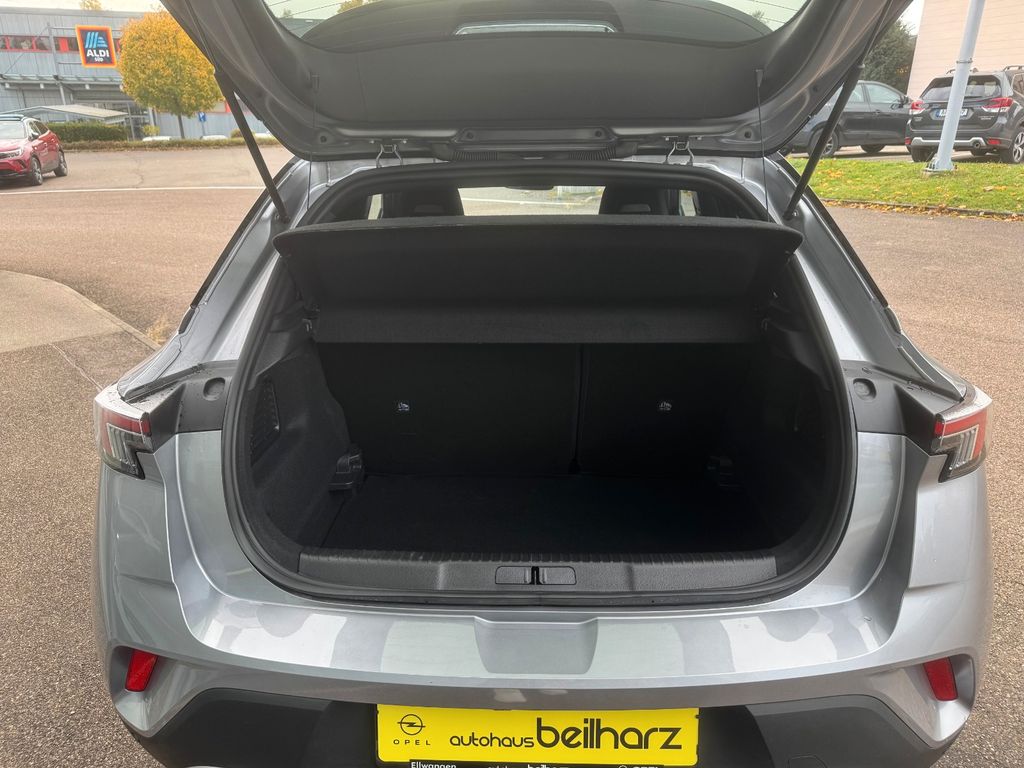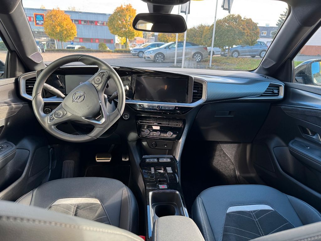 Audio-Navigationssystem Multimedia Navi Pro (10" Display), Bluetooth Audio-Streaming, DAB-Tuner (Radioempfang digital), Dach Diamant-Schwarz, Dachhimmel schwarz, Dachspoiler, Elektron. Stabilitäts-Programm Plus (ESP), Fahrassistenz-Paket: Active Drive Assist, Fahrassistenz-Paket: Active Drive Assist plus, Fahrassistenz-System: Müdigkeitserkennungs-Sensor, Fahrassistenz-System: Verkehrszeichenerkennung, Feststellbremse elektrisch, Freisprecheinrichtung (Bluetooth) mit Sprachsteuerung, Getriebe Automatik - mit Start-/Stop (8-Stufen), Innenausstattung: Leder Alcantara, Karosserie: 5-türig, Klimaautomatik, Kopf-Airbag-System, Kühlergrill, Opel Vizor, Rahmen in Chrom, Lenkrad heizbar, LM-Felgen, Motor 1,2 Ltr. - 96 kW, MP3-Schnittstelle für Mobiltelefon/Handy, Nebelscheinwerfer LED, Otto-Partikelfilter (OPF), Radstand 2557 mm, Reifen-Reparaturkit, Schadstoffarm nach Abgasnorm Euro 6d, Seitenairbag vorn, Sicht-Paket, Sitzheizung vorn, Start/Stop-Anlage, Voll-LED (IntelliLux), Wärmeschutzverglasung, Wärmeschutzverglasung hinten abgedunkelt (Solar-Protect)