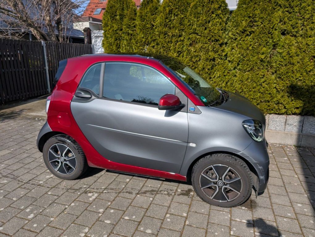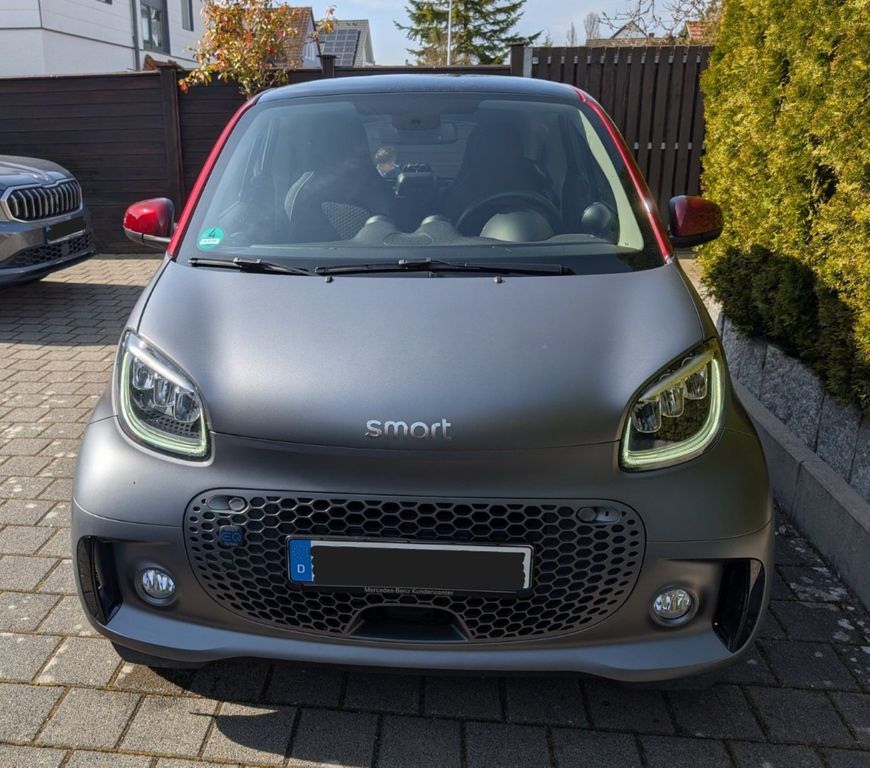 Smart fortwo EQ Coupé 82 PS FaceliftVerkaufe einen zuverlässigen Smart EQ fortwo coupé aus Mai 2020 aus Seniorenhaushalt mit wenig Laufleistung und leichten Gebrauchsspuren (siehe Fotos). Fahrzeug stand immer in der Garage. Aktuell angezeigte Reichweite 113 km.