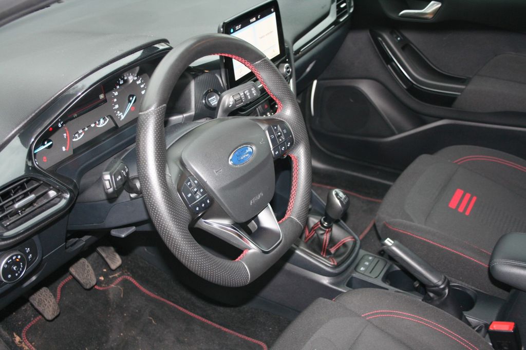 Airbag Beifahrerseite abschaltbar, Audiobedienung am Lenkrad, Audiosystem: Radio mit Ford SYNC (AppLink und Touchscreen), Außenspiegel elektr. verstellbar, Außenspiegel Wagenfarbe, Blinkleuchte in Außenspiegel integriert, Body-Styling-Paket, Bord-/Verbrauchscomputer, Brillenfach in Dachhimmel / Dachkonsole integriert, Dachhimmel Stoff, dunkel, Dachspoiler Wagenfarbe, Eco-Anzeige für verbrauchsoptimiertes Fahren (EcoCoach), Einparkhilfe hinten, Einstiegschienen mit Modell-Schriftzug, Elektr. Bremskraftverteilung (EBD), Energierückgewinnung (Smart Regenerative Charging), Fahrassistenz-System: Berganfahr-Assistent (Hill-Holder), Fahrassistenz-System: Notbrems-Assistent, Fahrassistenz-System: Sicherheitssystem SYNC mit automatischem Notruf, Fahrassistenz-System: Spurhalteassistent mit Müdigkeitserkennungs-Sensor, Fahrassistenz-System: Verkehrsschildassistent, Farbdisplay für Bordcomputer, Fensterheber elektrisch vorn + hinten mit Komfortschließung, Fußmatten Velours - vorn, Getriebe 6-Gang - Typ: 6MX65, Innenraumfilter: Staub- und Pollenfilter, Intelligent Protection System (IPS), Isofix-Aufnahmen für Kindersitz, Karosserie: 5-türig, Klimaautomatik, Kopfstützen hinten mechan. verstellbar (3 Stück), Kühlergrill im Sport-Design, Lackierung Race-Rot, Lenksäule (Lenkrad) höhen-/längsverstellbar, Leseleuchte vorn, LM-Felgen, Mild-Hybrid 92 kW (Motor 1,0 Ltr. - 92 kW EcoBoost), Modellpflege, My Key (2. Fahrzeugschlüssel programmierbar), Radioempfang digital (DAB), Reifen-Reparaturkit, Reifendruck-Kontrollsystem, Rücksitz geteilt, Rücksitzlehne klappbar, Schadstoffarm nach Abgasnorm Euro 6, Schadstoffarm nach Abgasnorm Euro 6d, Scheinwerfer LED, Scheinwerfer mit Ausschaltverzögerung, Scheinwerfer mit Begrüßungsfunktion, Scheinwerfer-Assistent mit Tag-/Nachtsensor, Sitz vorn links höhenverstellbar, Sonnenblende links mit Spiegel, Sonnenblende rechts mit Spiegel, Sport-Fahrwerk, Sportsitze vorn, Türgriffe außen Wagenfarbe, Verglasung getönt, Warnanlage für Sicherheitsgurte hinten.