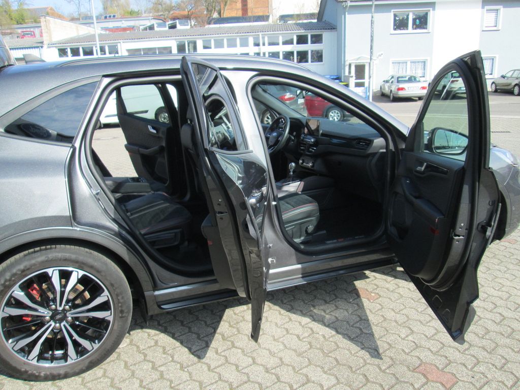 Ambiente-Beleuchtung vorn (LED), Antischlupfregelung (ASR), Audio-Navigationssystem Ford mit AppLink, Außenspiegel elektr. anklappbar, Außenspiegel elektr. verstell- und heizbar, Body-Styling-Paket, Bordcomputer, Brillenfach in Dachhimmel / Dachkonsole integriert, Dachhimmel Stoff, dunkel, Dachreling schwarz, Dachspoiler Wagenfarbe, Doppelendrohr Auspuffanlage, Eco-Anzeige für verbrauchsoptimiertes Fahren (EcoCoach), Fahrassistenz-System: Notbrems-Assistent, Fahrassistenz-System: Post-Collision-System, Fahrassistenz-System: Pre-Collision-System, Fahrassistenz-System: Spurhalteassistent, Fensterheber elektrisch vorn + hinten mit Komfortschließung, FordPass Connect inkl. eCall, Fußmatten ST-Design, Gepäckraumabdeckung / Rollo, Heckleuchten LED, Induktionsladeschale für mobile Endgeräte, Innenspiegel mit Abblendautomatik, Intelligent Protection System (IPS), Isofix-Aufnahmen für Kindersitz, Karosserie: 5-türig, Kindersicherung elektrisch, Klimaautomatik 2-Zonen, Kombiinstrument Digitalanzeige 12,3 Zoll, Kopfstützen vorn 4-fach verstellbar, Lenkrad (Sport/Leder, ST), Lenksäule (Lenkrad) höhen-/längsverstellbar, Mittelarmlehne hinten, Motor 1,5 Ltr. - 110 kW EcoBoost KAT (1496 ccm), My Key (2. Fahrzeugschlüssel programmierbar), Parkbremse elektrisch mit Auto-Hold-Funktion, Parkpilotsystem vorn und hinten, Pedale Aluminium, Radstand 2710 mm, Reifendruck-Kontrollsystem, Rücksitzlehne geteilt, Rücksitzlehne klappbar, Schadstoffarm nach Abgasnorm Euro 6d-TEMP, Schalt-/Wählhebelgriff Aluminium, Scheibenrahmen schwarz, Scheinwerfer mit Ausschaltverzögerung, Scheinwerfer-Assistent mit Tag-/Nachtsensor, Sitz vorn links elektr. verstellbar (10-fach), Sitz vorn rechts verstellbar (8-fach), Sitzbezug / Polsterung: Kunstleder / Stoff Wildleder Optik, Sitzheizung vorn, Sonnenblende links mit Spiegel (beleuchtet), Sonnenblende rechts mit Spiegel (beleuchtet), Sport-Fahrwerk, Sportsitze, Start/Stop-Anlage, Verglasung hinten abgedunkelt (Privacy Glass)