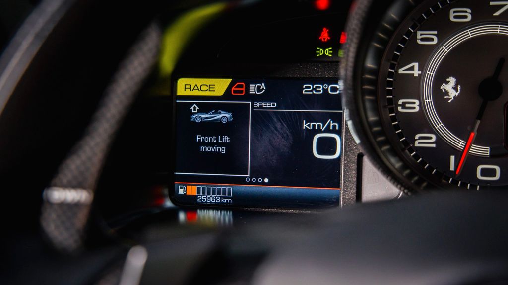 This 812 GTS is finished in the special matt paint color Grigio 812 Superfast Opaco. The Tortora interior combigned with the carbon fibre options completes the car into a true masterpiece. The carbon fibre diffuser and front spoiler add much detail to the exterior and will be protected by the front and rear suspension lift.