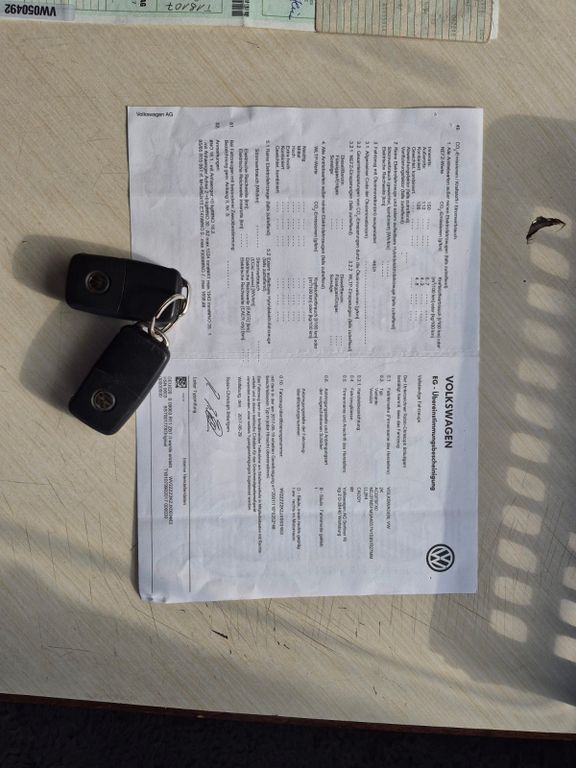 2.Sitzreihe Sitzbank (3 Sitzplätze), 3. Bremsleuchte, Abdeckung Schiebetürleiste in Wagenfarbe, Airbag Beifahrerseite, Airbag Beifahrerseite abschaltbar, Airbag Fahrerseite, Antriebs-Schlupfregelung (ASR), Armaturentafel mit Ablagefachdeckel, Ausstattungs-Paket: BlueMotion Technology, Außenspiegel asphärisch, links, Außenspiegel elektr. verstell- und heizbar, Außenspiegel konvex, rechts, Außenspiegel lackiert, Außenspiegel, Ausführung: PKW, Bodenbelag hinten (Teppich), Bodenbelag vorn (Teppich), Bremsassistent, Dachhimmel Komfort vorn und hinten, Dachreling/Dachträger Vorbereitung, Elektron. Differentialsperre (EDS), Fahrassistenz-System: Berganfahr-Assistent, Fahrassistenz-System: Multikollisionsbremse (Multi Collision Brake), Fahrassistenz-System: Umfeldbeobachtungssystem (Front assist) mit City-Notbremsfunktion, Frontscheibe Verbundglas getönt, Gepäckraumabdeckung / Rollo, Geschwindigkeits-Begrenzeranlage, Heckklappe mit Verglasung, Heckscheibe heizbar, Heckscheibenwischer, Innenausstattung: Dekoreinlagen Cortina Gloss, Innenraumfilter: Staub- und Pollenfilter, Innenspiegel abblendbar, Karosserie/Aufbau: Kombi, Kopf-Airbag-System hinten, Lenkrad (3 Speichen), Lenksäule (Lenkrad) mechan. verstellbar, Höhen-/Längsverstellung, Motor 2,0 Ltr. - 55 kW TDI, Multifunktionsanzeige / Bordcomputer, PKW-Zulassung, Radstand 2682 mm, Reifen-Reparaturkit (Tire Mobility Set), Reifenkontroll-Anzeige, Schadstoffarm nach Abgasnorm Euro 6, Scheibenwischer mit Intervallschaltung, Scheinwerfer Halogen H4, Schiebetür links, Schiebetür rechts, SCR-System (AdBlue-Technologie), Seitenairbag vorn mit Kopf-Airbag-Einheit, Seitenfenster im Lade-/Fahrgastraum hinten links, fest, Seitenfenster im Lade-/Fahrgastraum hinten rechts, fest, Seitenfenster im Lade-/Fahrgastraum vorn links, fest, Seitenfenster im Lade-/Fahrgastraum vorn rechts, fest, Seitenschutzleisten, Sicherheitsgurte hinten mit Gurtstraffer, Sicherheitsgurte vorn mit Gurtstraffer, höhenverstellbar, Sitz vorn links höhenverstellbar, Sitzbezug / Polsterung: Stoff, Sitze: Komfortsitze vorn, Sonnenblende links mit Spiegel, Sonnenblende rechts mit Spiegel, Stahlfelgen 6x15, Start/Stop-Anlage, Steckdose 12V im Koffer-/Laderaum, Türgriffe außen Wagenfarbe, Verbandkasten und Warndreieck, Verkleidung im Lade-/FG-Raum: Komfort, Warnanlage für Sicherheitsgurte vorn, Wärmeschutzverglasung grün getönt