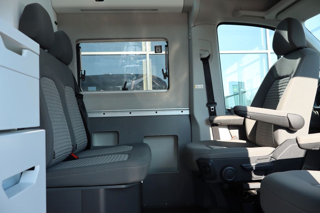 Ablage-Paket 2, Audio-Navigationssystem Discover Media Streaming & Internet (Touchscreen, USB), Ausstattungs-Paket Licht + Sicht, Außenspiegel elektr. verstell-, heiz- und anklappbar, Fahrassistenz-System: Autom. Distanzregelung mit Fahrzeug-Stop-Funktion (ACC inkl. follow to stop), Fahrassistenz-System: Einparkhilfe vorn und hinten mit aktivem Flankenschutz, Fahrassistenz-System: Spurwechselassistent (Side Assist / Blind Spot Sensor), Fahrassistenz-System: Umfeldbeobachtungssystem (Front Assist) mit City-Notbremsfunktion, Fahrassistenz-System: Verkehrszeichenerkennung, Hochbett vorn inkl. Panoramadach, Induktionsladeschale für Smartphone (Wireless Charging) im Fahrgastraum, Klimaautomatik Climatronic (Fahrerhaus + Lade-/Fahrgastraum), Lackierung: Metallic-Lackierung, Lenkrad mit Multifunktion, Markise seitlich, Beifahrerseite (Gehäuse schwarz), Radioempfang digital (DAB+), Radkappen, Rückfahrkamera, Scheibenwaschdüsen beheizt und Anzeige für Waschwasserstand, Scheinwerfer LED, Sitze im Fahrerhaus: Fahrer- und Beifahrersitz heizbar, Solar-Anlage auf Fahrzeugdach vorn, Steckdose 230V im Fahrerhaus