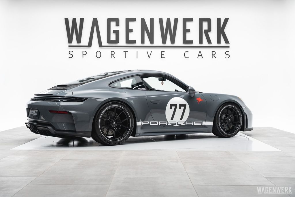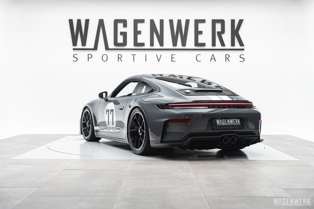 Unser GT3 Touring präsentiert sich in der exklusiven Farbe Schiefergrau Neo – ein Grauton mit Geschichte, der Perfektion, Eleganz und Sportlichkeit auf einzigartige Weise verbindet. Kombiniert mit einer dezenten Streifenbeklebung und weißen Felgenakzenten entsteht ein stimmiges Gesamtkonzept, das Understatement neu definiert.