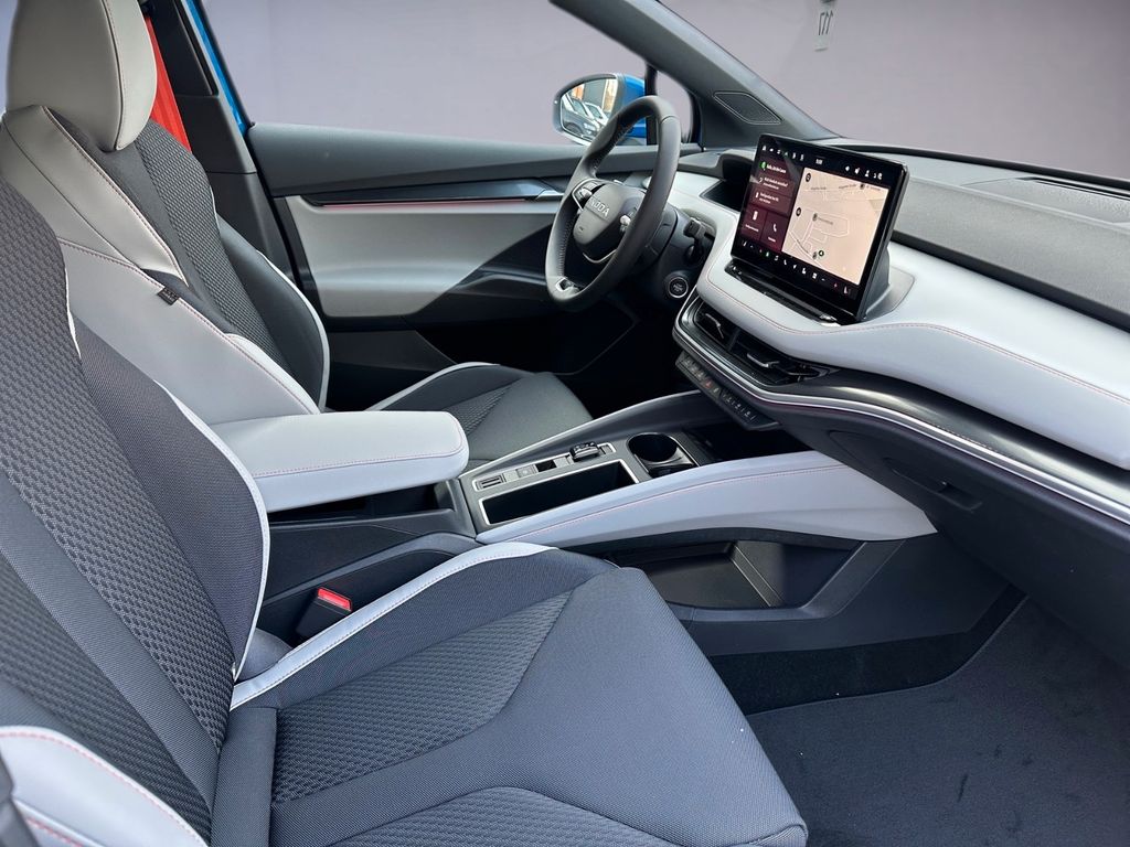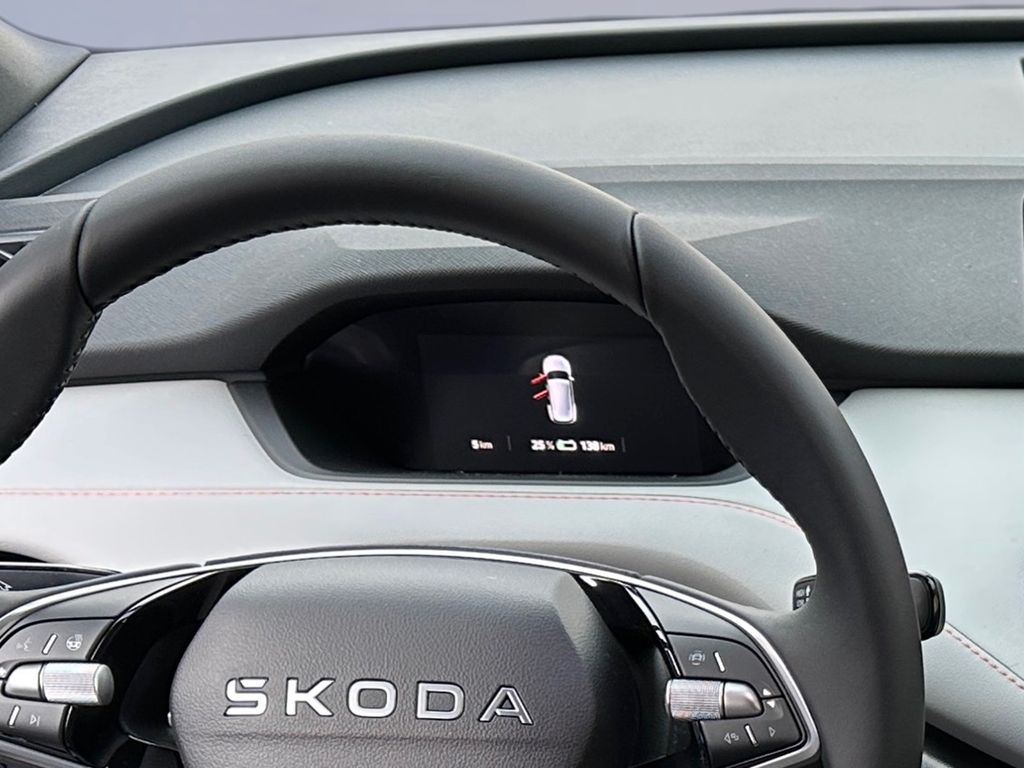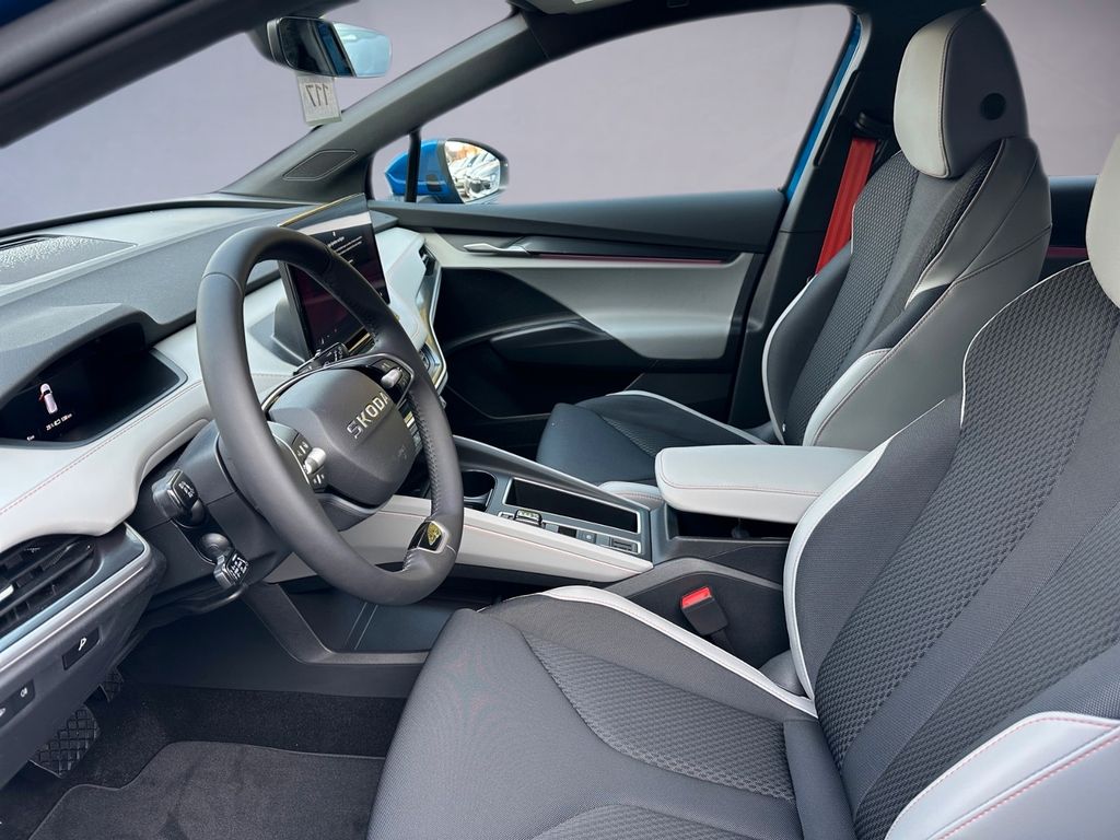 8 Lautsprecher, Ablagefach für Regenschirm, Ablagefach Türverkleidung hinten, Ablagefächer (Gepäck-/Laderaum), Airbag Beifahrerseite abschaltbar, Airbag Fahrer-/Beifahrerseite, Akustischer Fußgängerschutz, Außensound (e-sound), Ambiente-Beleuchtung LED, Antriebsart: Heckantrieb, Außenspiegel elektr. verstell-, heiz- und anklappbar, mit Abblendautomatik, Außenspiegel Wagenfarbe, Chrom-Paket, Dachhimmel grau, Dachhimmel schwarz, Design Selection Lodge, Easy Start (Keyless Easy Entry), Elektromotor 210 kW (cont. 89 kW), Fahrassistenz-System: Abbiegebremsfunktion und Ausweichunterstützung, Fahrassistenz-System: Auffahrwarnsystem mit City-Notbremsfunktion (Frontradar-Assistent), Fahrassistenz-System: Autom. Distanzregelung (ACC) mit Frontradar-Assistent (bis 210 km/h), Fahrassistenz-System: Intelligente Geschwindigkeitsanpassung (ISA) inkl. Speed-Limiter, Fahrassistenz-System: Multikollisionsbremse (Multi Collision Brake), Fahrassistenz-System: Müdigkeitserkennung, Fahrassistenz-System: Spurwechselassistent inkl. Auspark-Assistent und Ausstiegswarnung, Fahrassistenz-System: Verkehrszeichenerkennung, Fensterheber elektrisch vorn + hinten, Fußraumbeleuchtung vorn und hinten LED, Gepäck-/Laderaumabdeckung, Geschwindigkeits-Begrenzeranlage, Getriebe für Elektrofahrzeug, Heckleuchten LED, Heckscheibenwischer, HV-Batterie 82 kWh brutto / 77 kWh netto, Infotainment-System mit 13" Display, Innenspiegel mit Abblendautomatik, Insassen-Schutzsystem proaktiv, Isofix-Aufnahmen für Kindersitz an Beifahrersitz und Rücksitze außen (inkl. Top Tether), Karosserie: 5-türig, Kindersicherung, manuell, Klimaanlage Climatronic 2-Zonen, Kofferraumbeleuchtung, Kombiinstrument digital (virtual cockpit), Komfort-Freisprecheinrichtung Bluetooth, mit Sprachsteuerung, Komfortsitze vorn, Kopf-Airbag-System, Kopfstützen vorn und hinten verstellbar, Ladekabel mit Typ 2-Stecker (Mode 3), Lenksäule (Lenkrad) verstellbar (vertikal / axial), Leuchtweitenregelung, Licht- und Regensensor, Lichtassistent (Coming Home, Leaving Home), LM-Felgen, Parkbremse elektronisch, Radioempfang digital (DAB+), Radstand Standard, Reifen-Reparaturkit, Reifendruck-Kontrollsystem, Rückfahrkamera, Rücksitz geteilt / klappbar (60:40) Mittelarmlehne und Durchladefunktion, Scheinwerfer LED, Schnellladevorrichtung (CCS-Ladedose), Seitenairbag vorn, Seitenairbag vorn mitte (Center-Airbag), Servolenkung elektronisch (Servotronic), Sitzbezug / Polsterung: Stoff/Kunstleder Lodge schwarz, Sitze vorn höhenverstellbar inkl. Lendenwirbelstütze verstellbar, Sitzheizung vorn, Smart-Paket, Sonderlackierung Energy-Blau, Sonnenblenden mit Spiegel (LED-Beleuchtung), Steckdose (12V-Anschluß) im Koffer-/Laderaum, Stoßfänger vorn und hinten mit Unique Dark Chrom-Applikationen, Textilfussmatten, Türgriffe außen Wagenfarbe, USB-Schnittstelle vorn (2-fach, Typ C), Vorbereitung für Alkohol-Wegfahrsperre (Alcolock), Warnanlage für Sicherheitsgurte hinten, Warnanlage für Sicherheitsgurte, Fahrer-/Beifahrerseite, Wireless SmartLink