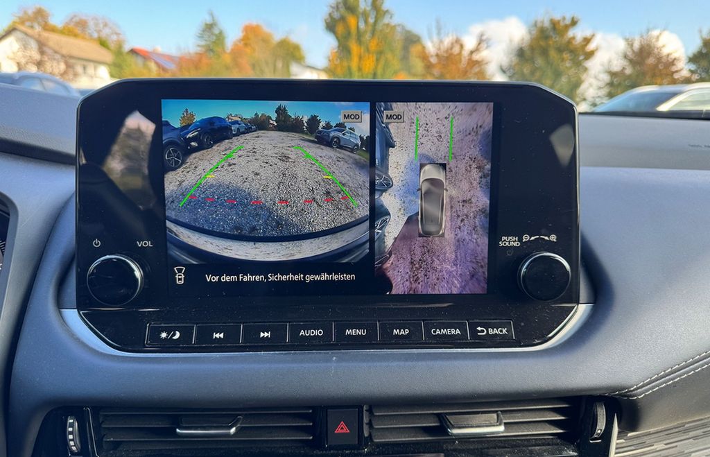 Navigationssystem: NissanConnect - 9 Zoll Touchscreen inkl. TomTom Services mit Premium-Verkehrsinformationssys., - 3 Jahre kostenlose Kartenaktual. - Integrierte Spracherken. fuer Audio und Telefon - Drahtloses Apple CarPlay, Kabelgebund. AndroidAuto - Intelligenter Around View Mo