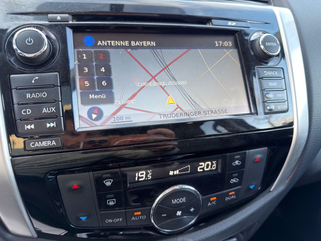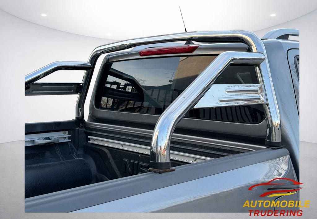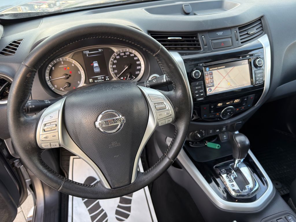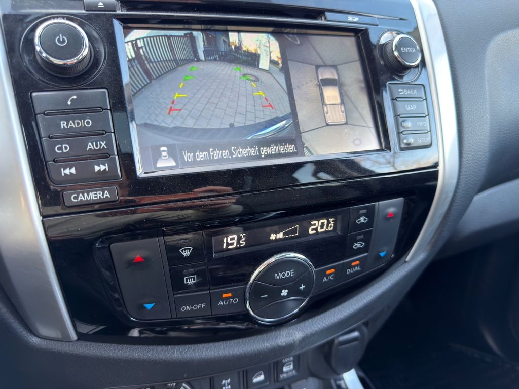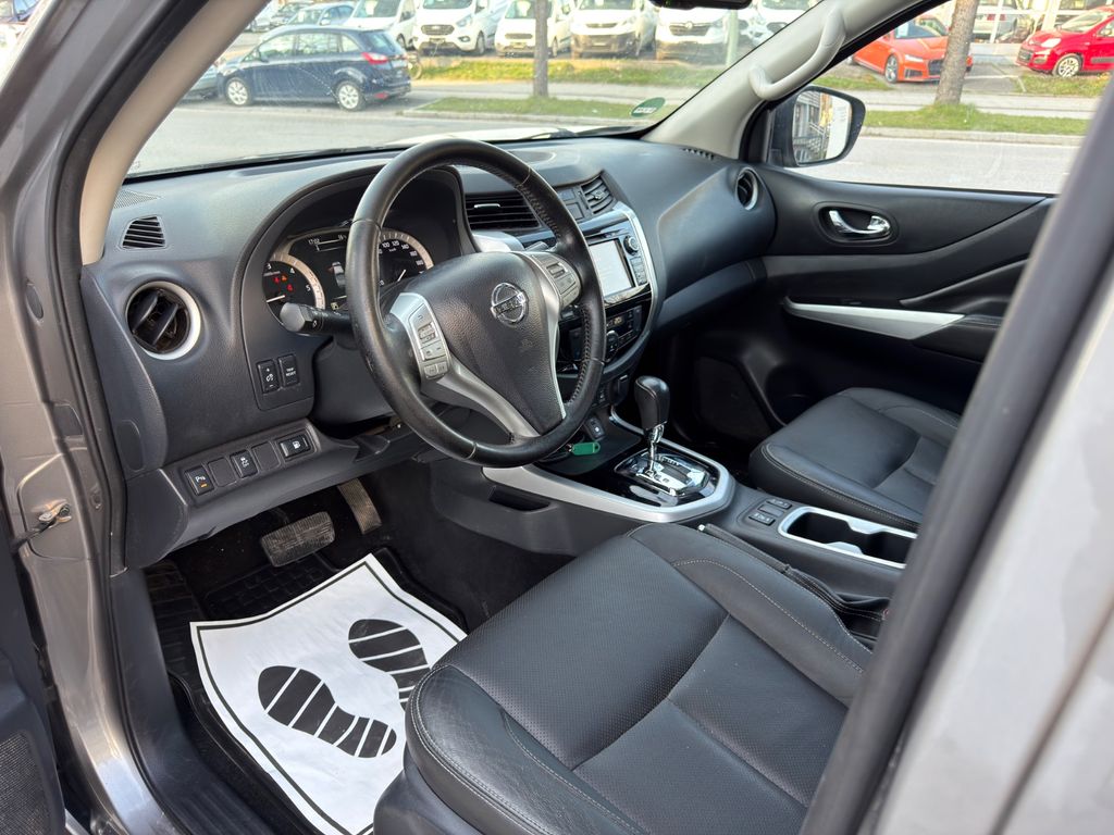 Airbag Beifahrerseite abschaltbar, Airbag Fahrer-/Beifahrerseite, Audiobedienung am Lenkrad, Ausstattungs-Paket: Nissan Connect Navigationssystem mit Around View Monitor, Automatische Fahrlichtschaltung, Außenspiegel elektr. anklappbar, Außenspiegel elektr. verstellbar, Außenspiegel heizbar, Außenspiegel mit Chromblende, Außentemperaturanzeige, Bremsassistent (Nissan Brake-Assist), Chromeinfassung für Nebelscheinwerfer, Coming-Home-Lichtfunktion (Friendly Lightning), Differentialsperre mit begrenztem Schlupf, Einparkhilfe hinten, Fahrassistenz-System: Autonomer Notbrems-Assistent, Fahrassistenz-System: Bergabfahr-Assistent, Fahrassistenz-System: Berganfahr-Assistent, Fahrer-Informations-System (FIS) mit Farbdisplay, Fensterheber elektrisch hinten, Frontscheibe mit Bandfilter oben, Gurtstraffer, Heckscheibe heizbar, Innenspiegel mit Abblendautomatik, Isofix-Aufnahmen für Kindersitz, Karosserie/Aufbau: Doppelkabine (Double-Cab), Karosserie/Aufbau: Pick-Up, Klimaautomatik 2-Zonen, Knieairbag Fahrerseite, Kopf-Airbag-System, Kopfstützen hinten, Lenksäule (Lenkrad) verstellbar, LM-Felgen, Motor 2,3 Ltr. - 140 kW dCi Diesel KAT, Optik-Paket, Radstand 3150 mm, Reserverad in Fahrbereifung, Schadstoffarm nach Abgasnorm Euro 6, Scheibenwischer mit Intervallschaltung, Schiebedach elektrisch, Schienensystem Lastenverankerung, Schmutzfänger hinten, Schmutzfänger vorn, Seitenairbag, Sitz vorn links elektr. verstellbar, Sitz vorn links höhenverstellbar, Sitzbezug / Polsterung: Leder, Sitzheizung vorn, Start-Stop-Knopf, Steckdose (12V-Anschluß), Stoßfänger hinten verchromt, Stoßfänger vorn Wagenfarbe, Trittbretter seitlich, Verglasung hinten abgedunkelt