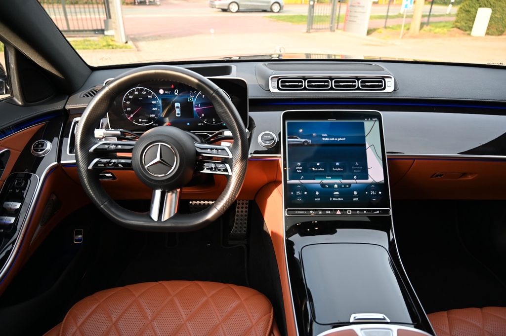 Sonderausstattung:Ambiente-Beleuchtung, Aktive, Ausstattungs-Paket USB Plus, Digital Light, Head-up-Display (Frontsichtanzeige), Innenausstattung: Holz Pappel schwarz glänzend, Innenhimmel schwarz, Kraftstofftank: vergrößert, LM-Felgen vorn/hinten: 9x21 / 10x21 (AMG, 5-Doppelspeichen, schwarz), Metallic-Lackierung, Multikontursitz-Paket Aktiv, Multimediasystem MBUX Entertainment, Multimediasystem MBUX High-End (Entertainment im Fond), Night-Paket, Panorama-Schiebedach, Park-Paket mit 360° Kamera, Seitenscheiben hinten und Heckscheibe abgedunkelt, Sitzbezug / Polsterung: Leder Nappa, 2-farbig, Sitze vorn: Klimatisierung, Sound-System mit Soundpersonalisierung, Surround-System Burmester, Zusatzheizung (Standheizung)