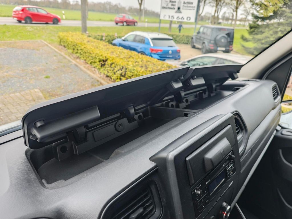 Ablagegalerie, Airbag Fahrerseite, Audiobedienung am Lenkrad, Audiosystem: Radio mit CD-Player mit Bluetooth, Außenspiegel elektr. verstell- und heizbar, Bordcomputer, Design- und Ausstattungslinie PRO, Drehzahlmesser, Elektr. Bremskraftverteilung (EBD), Fahrassistenz-System: Berganfahr-Assistent, Fahrassistenz-System: Seitenwind-Assistent, Heckflügeltüren ohne Verglasung, Karosserie/Aufbau: Kasten Standard, Kraftstofftank: 105 Ltr., Laderaumtrennwand, Lenksäule (Lenkrad) höhenverstellbar, Motor 2,3 Ltr. - 99 kW dCi Diesel KAT, Nebelschlussleuchte, Radstand 3182 mm, Reserverad in Fahrbereifung, Schadstoffarm nach Abgasnorm Euro 6d-TEMP, Schaltpunktanzeige, Schiebetür Lade-/Fahrgastraum rechts, Schmutzfänger vorn, Sitze im Fahrerhaus: Beifahrerdoppelsitz, Steckdose 12V im Lade-/Fahrgastraum, Trittstufe hinten, Wärmeschutzverglasung mit UV-Schutz