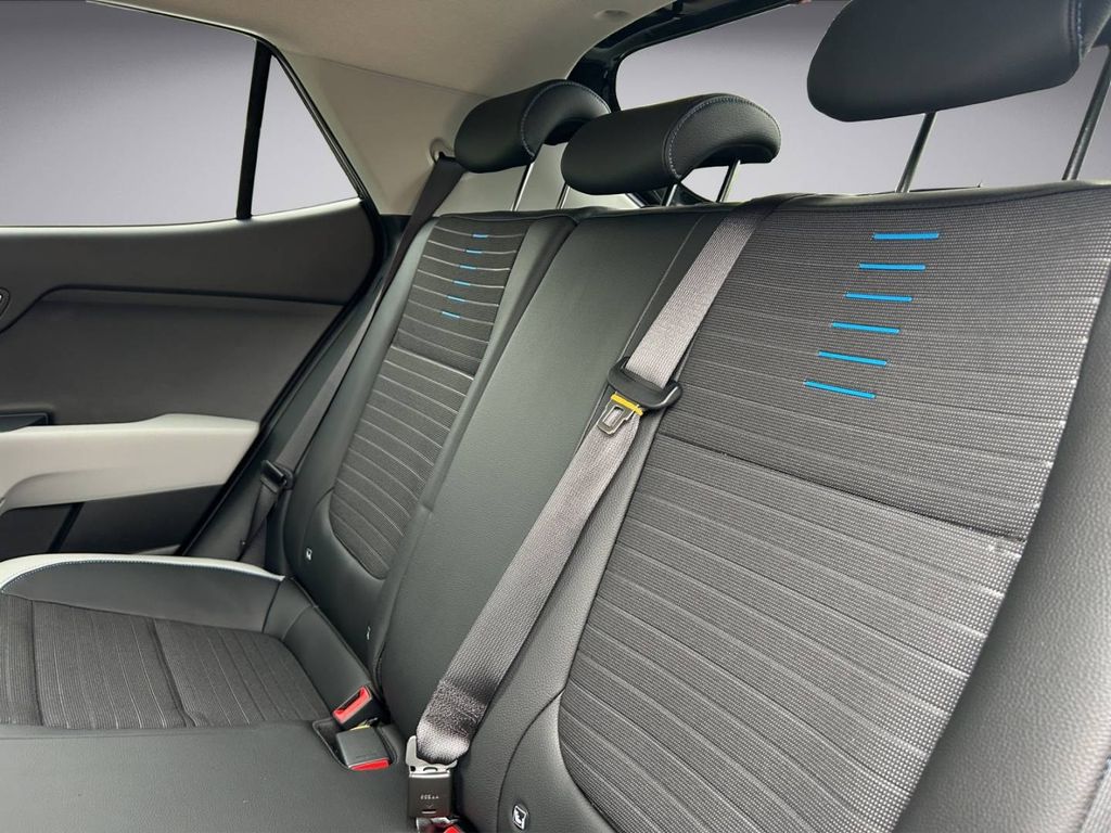 - Blaue Farbakzente im Innenraum und auf der Mittelbahn der Sitzbezüge