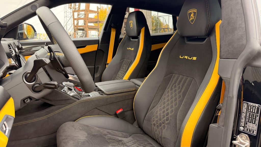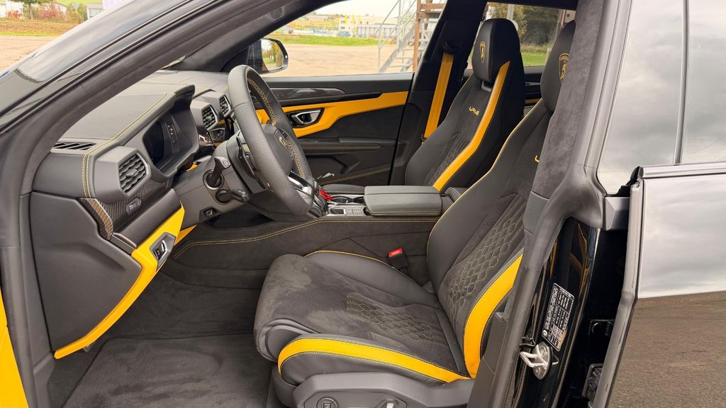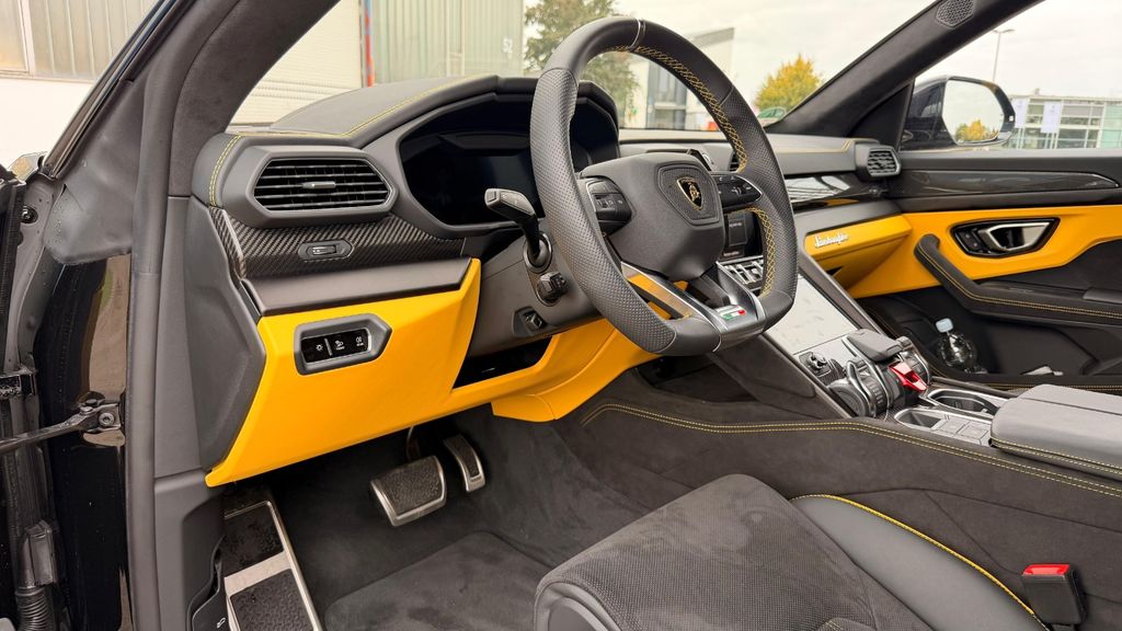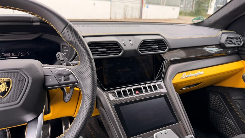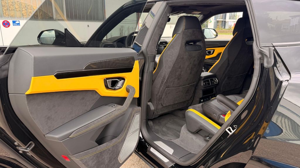 Rims Taigete 23 shiny black Yellow caliper Panoramic Roof Rear Diffuser&Door Inserts High Gl.Black Bonnet air vents Body Color Style Package Body Color&Fr. Plast. Splitt Rear Lamborghini Logo High Gloss Black Black Chrome Exhaust Tailpipes Bicolor Sport. Alcantara Int. Perf.Trim Nero/Giallo Giallo Stitching Multif.st.wh.perforated leather, heated Giallo stitching on steering wheel Fully Electr. Fr.Seats, Ventilatio&Massage Embroidered Lamborghini shield on headre Front and Rear Seats Heated Seat Belts - Giallo Taurus Small Interior Carbon Package Shiny Black Anodized Treatment Aluminium Inser Highway Assistant Parking Assistance Pack.Remote Park Assi Urban Road Assistant Navigation systemLamborghini smartphone Interface Advanced 3D Bang&Olufsen Sound System DAB Radio Digital Radio Reception Lamborghni ANIMA with Off-Road Modes Head Up Display Ambient Light Package Soft Close Hands Free Tailgate Wiper blades integrated nozzles Premium air quality system Heated and heat-reflective windscreen Privacy glasses,acustic&heat-insulat.gla Night Vision Lamborghini Door Lights Maintenance Pack 3 yearskilometerstand kann variieren, da das Fahrzeug noch gefahren wird
