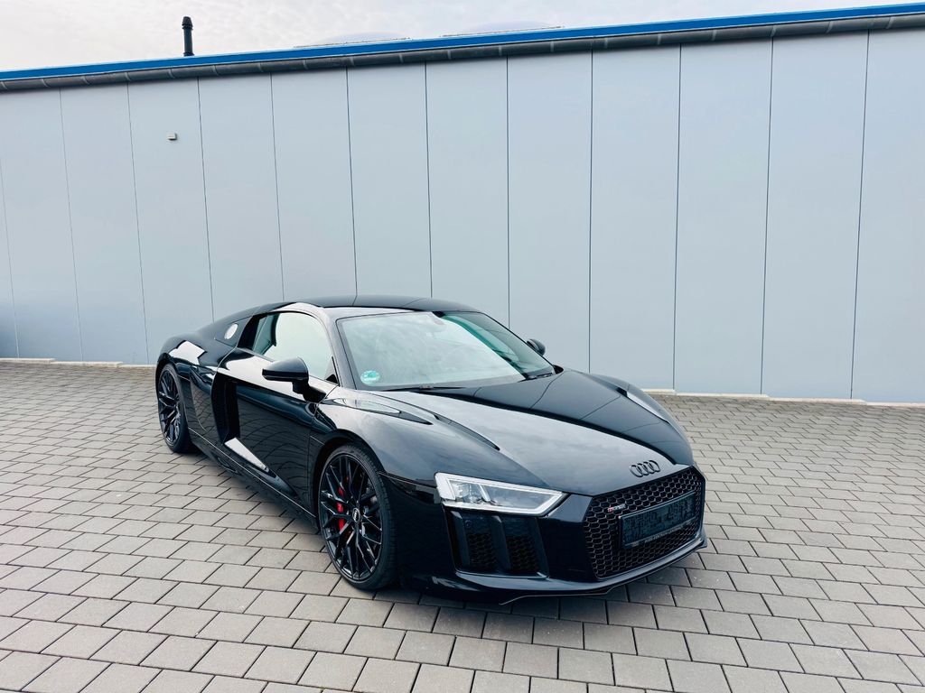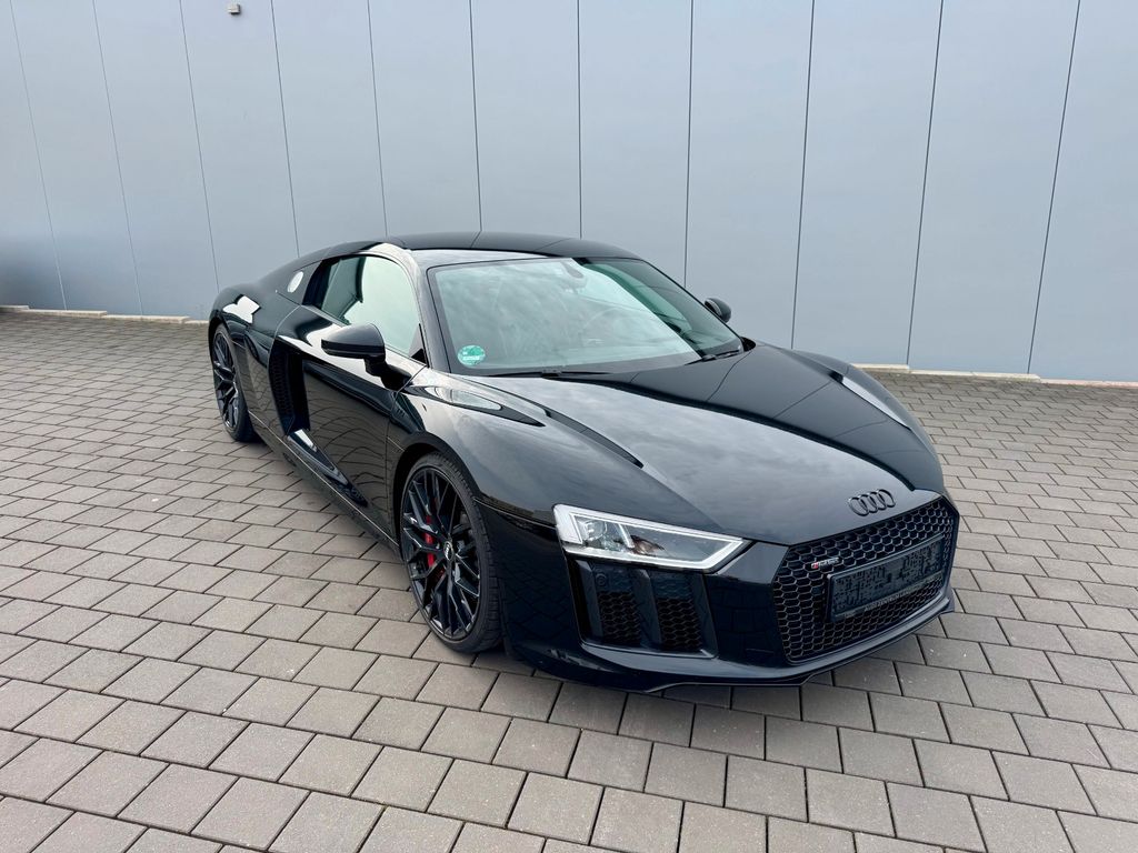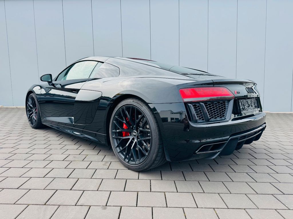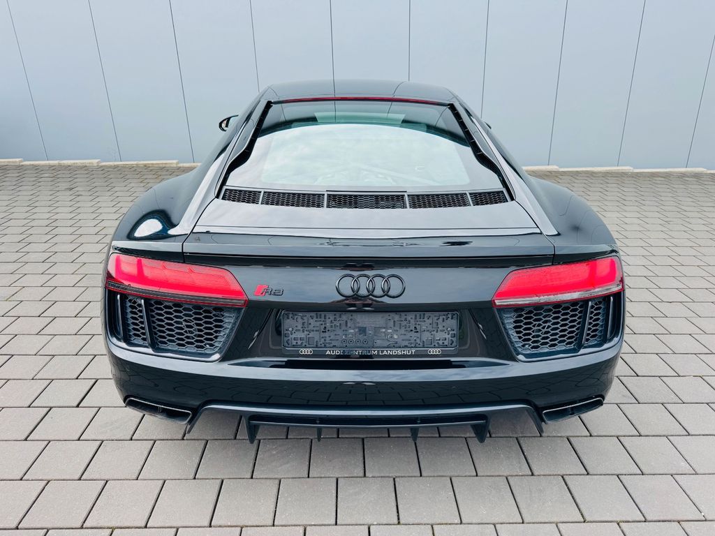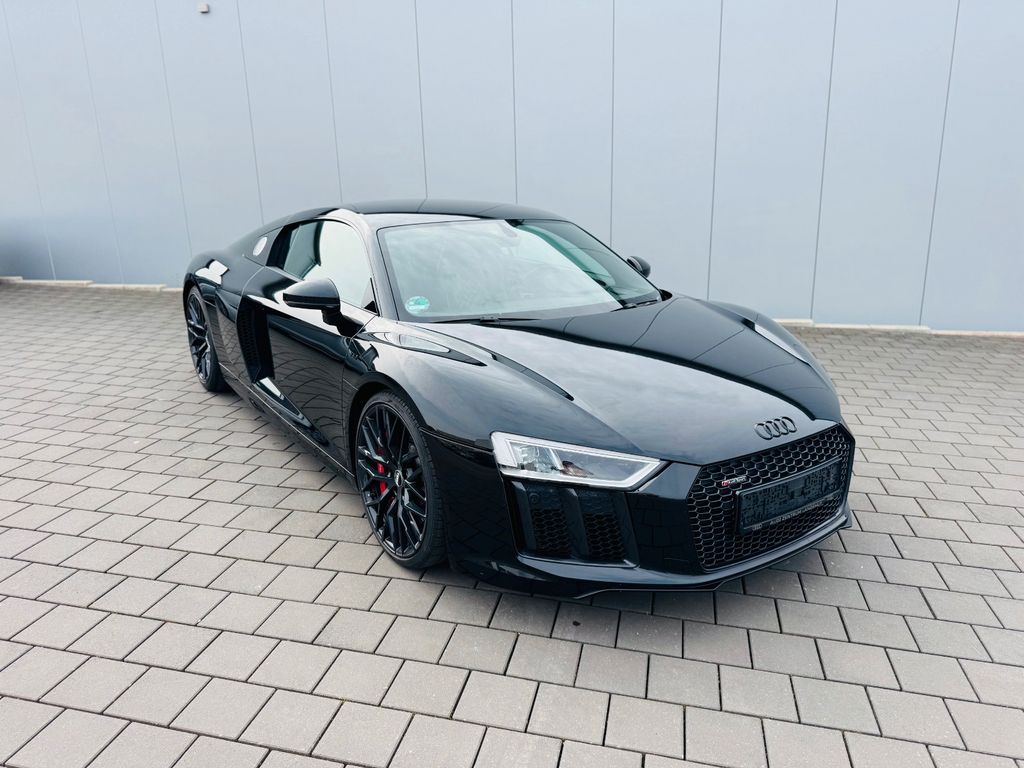 Airbag Beifahrerseite abschaltbar, Airbag Fahrer-/Beifahrerseite, Antriebs-Schlupfregelung (ASR), Audi Drive Select, Audi music interface, AUX-IN-Anschluss, Außenspiegel elektr. verstell-, heiz- und anklappbar, mit Abblendautomatik, Außenspiegel Wagenfarbe, Blinkleuchten LED in Außenspiegel integriert, Bremsanlage mit Rekuperationssystem, Bremsassistent, Diebstahlsicherung für Räder (Felgenschlösser), Einstiegsleisten mit Aluminiumeinlage, Elektron. Differentialsperre (EDS), Fahrwerk mit Dämpferregelung (Magnetic Ride), Frontscheibe Verbundglas, Fußmatten Velours, Heckleuchten LED mit dynamischem Blinklicht, Heckspoiler (elektrisch ausfahrbar), Innenausstattung: Dekoreinlagen Titanlack, Anthrazit, erweitert, Innenausstattung: Leder Feinnappa, Innenspiegel mit Abblendautomatik, Isofix-Aufnahmen für Kindersitz an Beifahrersitz, Karosserie: 2-türig, Klimaautomatik, Kombiinstrument digital (virtual cockpit), Kopf-Airbag-System (Sideguard), Kraftstofftank: 83 Ltr., Lendenwirbelstützen vorn, elektr. verstellbar, Lendenwirbelstützen vorn, pneumatisch verstellbar, Lenkrad (Sport/Leder - 3-Speichen, unten abgeflacht) mit Multifunktion plus, Licht-Paket, Modellvariante COD (cylinder on demand), Motor 5,2 Ltr. - 397 kW V10 40V FSI, Multi-Media-Interface MMI Navigation Plus mit MMI Touch, Nebelschlussleuchte, Nichtraucher-Paket, R8 Sportsitze, Reifen-Reparaturkit, Reifendruck-Kontrollsystem, Schadstoffarm nach Abgasnorm Euro 6, Schalt-/Wählhebelgriff Aluminium, Seitenairbag vorn, Sitzbezug / Polsterung: Leder Feinnappa, Sitze vorn elektr. verstellbar (mit Memory), Sitzheizung vorn, Sound-System Bang & Olufsen, Sport-Fahrwerk, Start/Stop-Anlage, Universal-Schnittstelle Bluetooth, Wärmeschutzverglasung grün getönt, Innenspiegel automatisch abblendend, Sitzheizung vorn