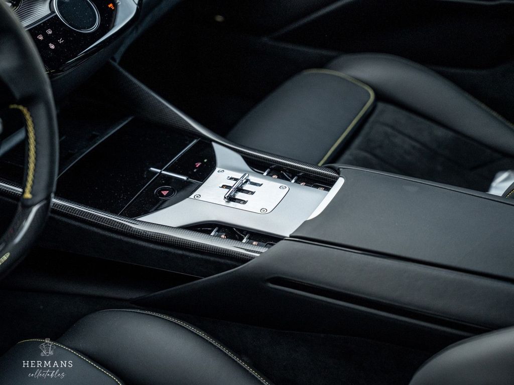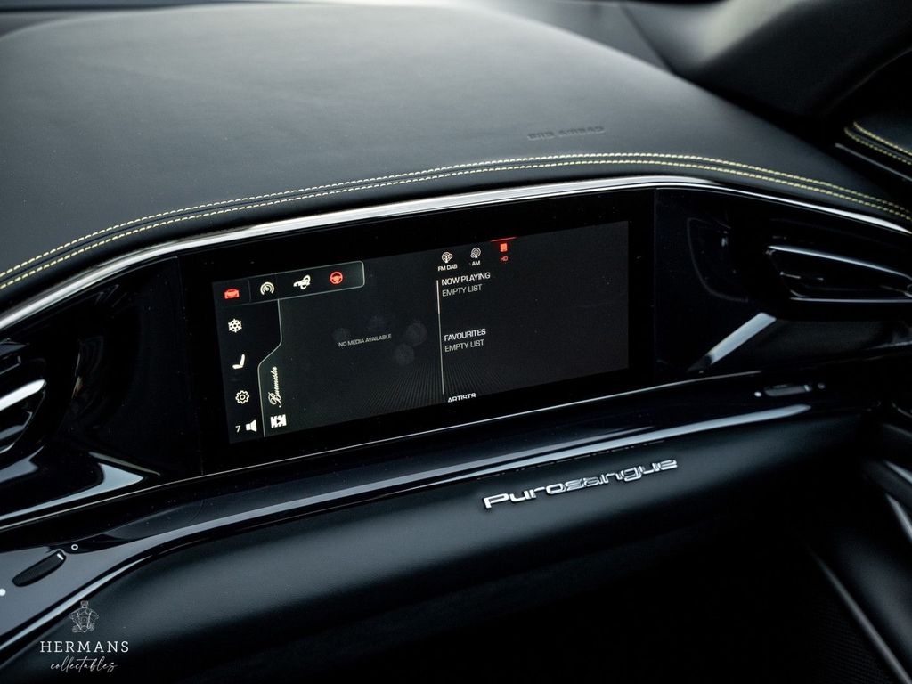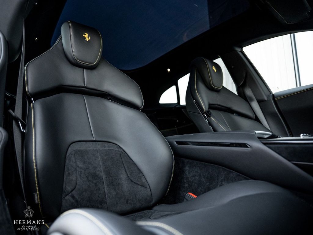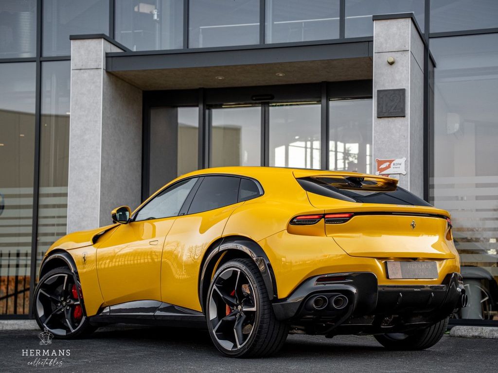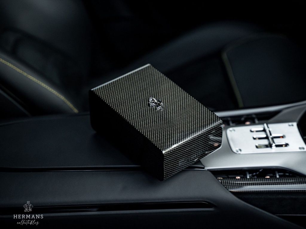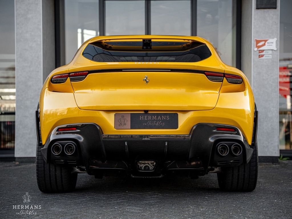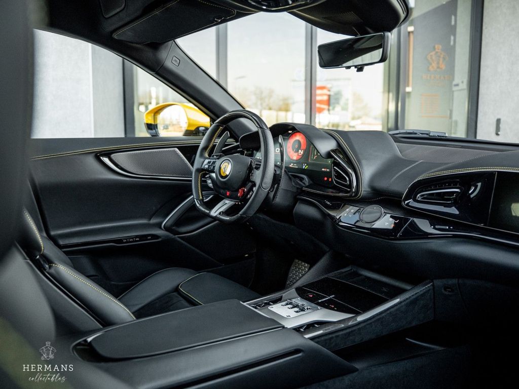 Der Ferrari stammt aus Erstbesitz und ist stilvoll in der 4-lagigen Sonderlackierung „Giallo Triplo Strato“ (mit Lackschutzfolie) lackiert. Hinzu kommen zahlreiche Carbon-Optionen im Innen- und Außenbereich, eine Leder- und Alcantara-Innenausstattung „Nero 8500“ mit Kontrastnähten in Spezialgarn „Nuovo Giallo (0700E)“, Airbrush-Embleme und Bremssättel in „Rosso Corsa“ für die Keramikbremsen hinter den 23-Zoll-Purosangue-Rädern mit Carbon-Radkappen.