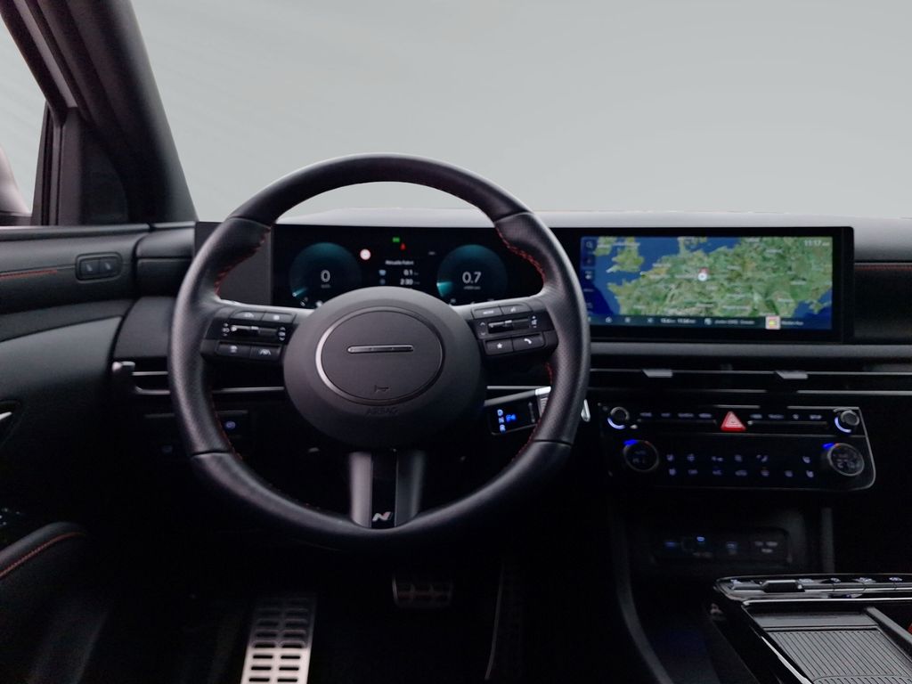 - Weiteres: Außenfarbe Shadow Grey, Sonder-Lackierung, MJ25, Assistenz-Paket, ECS adaptives Fahrwerk, Sitz-Paket, Paket Digital Key, Elektr. Panoramadach, Getriebe: 7-Gang-DCT - Automatik / Shift-by-Wire, Antrieb/Motor: 1.6 T-GDi 160PS / 48Volt-Mild-Hybrid, Antriebsart: Frontantrieb / 2WD, Abbiegelicht, Alarmanlage, Adaptiver Abstandstempomat / Speed-Limiter, Aktiver Spurhalteassistent, Assistent Totwinkel / Monitoranzeige, Ambientebeleuchtung, Audio: Navigation / Bluelink-Connect / Map Care / Radio DAB+ / 12,3 Zoll-Touchscreen, Apple CarPlay / Android Auto / Bluetooth / USB, Aufmerksamkeits-Assistent, Ausstiegsassistent, Außenspiegel elektr. / beheizt / elektr. anklappbar, Autobahnassistent, Autonomer Notbremsassistent / Frontkollisionswarnung / Fußgänger- + Fahrraderkennung / Abbiegefunktion, Anhänger-Stabilitätshilfe, Autom. Notrufsystem eCall, Airbags: Front / Center / Seite / Kopf (Beifahrer abschaltbar), Berganfahrassistent, Dachreling, Digitales Cockpit, Drive-Mode, Einparken: Sensoren vorn/Seite/hinten / 360°-Kamera / Assistent mit FFB, Elektr. Fensterheber vorn/hinten, Elektr. Heckklappe, Elektron. Stabilitätskontrolle ESC / Vehicle Stability Management VSM, Fernlichtassistent, Getränkehalter vo. / hi., Head-Up-Display, Insassenalarmassistent, Innenspiegel autom. abblendend, Induktionsladung für Smartphone, Klimaautomatik 3-Zonen, Leder-Sportlenkrad beheizt / verstellbar, LED-Scheinwerfer(Voll) Matrix / -Rücklicht / -Tagfahrlicht / -Blinker, LED Innen- / Gepäckraum-Beleuchtung, Lichtsensor, Mittelarmlehne vorn / hinten, N-LINE Sport-Außen-Design, N-LINE Sport-Innenausstattung, Parkbremse elektr., Pedale Alu-Optik, Querverkehrsassistent, Regensensor, Reifendruckkontrolle, Seitenwindassistent, Sportsitze vorn elektrisch / klimatisiert / beheizt / Memory-Funktion(Fahrer), Sitze vorn elektr. Lordosenstütze, Sitzbank hinten beheizt(2) / Isofix / geteilt klappbar / Sonnenrollos, Sitzpolsterung: Leder-Stoff-Kombination N-Line, Smart-Key-System / Start-Knopf, Steckdose 12V vo./hi., Soundsystem KRELL, Verglasung Akustikglas / Wärmeschutz / Privacy Glass, Verkehrszeichenassistent, Zentralverriegelung mit Fernbed., Leichtmetallräder 235/50R19, Ganzjahresreifen
