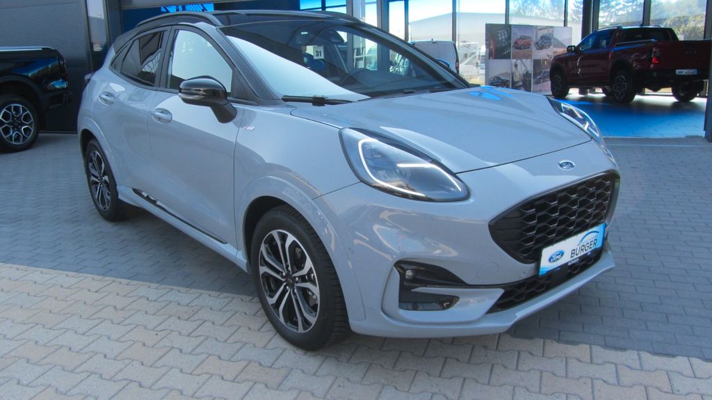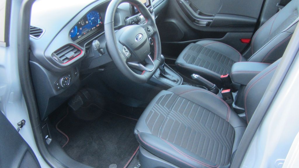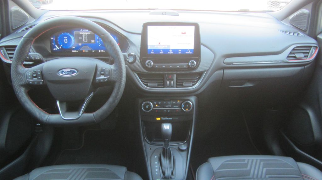 Ambiente-Beleuchtung vorn (LED), Antischlupfregelung (ASR), Audio-Navigationssystem Ford mit AppLink, Außenspiegel elektr. anklappbar, Außenspiegel elektr. verstell- und heizbar, Body-Styling-Paket, Dachhimmel Stoff, dunkel, Eco-Anzeige für verbrauchsoptimiertes Fahren (EcoCoach), Einparkhilfe hinten, Fahrassistenz-System: Berganfahr-Assistent (Hill-Holder), Fahrassistenz-System: Falschfahrer-Warnfunktion, Fahrassistenz-System: Fernlichtassistent (Scheinwerfer mit Abblendautomatik), Fahrassistenz-System: Notbrems-Assistent, Fahrassistenz-System: Post-Collision-System, Fahrassistenz-System: Pre-Collision-System, Fahrassistenz-System: Spurhalteassistent mit Müdigkeitserkennungs-Sensor, Fahrassistenz-System: Verkehrsschildassistent, Farbdisplay für Bordcomputer, Fensterheber elektrisch vorn + hinten mit Komfortschließung, FordPass Connect inkl. eCall, Fußmatten Teppich, Getriebe 7-Gang - Doppelkupplungsgetriebe, Heckleuchten LED, Innenraumfilter: Staub- und Pollenfilter, Intelligent Protection System (IPS), Intelligenter Geschwindigkeits-Begrenzer, Isofix-Aufnahmen für Kindersitz, Karosserie: 5-türig, Kombiinstrument Digitalanzeige 12,3 Zoll, Komfort-Paket, Kopfstützen hinten mechan. verstellbar (3 Stück), Lackierung Blazer-Blau, Laderaumboden variabel (Ford Megabox), Lendenwirbelstütze vorn, Lenkrad (Sport/Leder, ST), Lenkrad mit Schaltwippen, Lenksäule (Lenkrad) höhen-/längsverstellbar, LM-Felgen, Mild-Hybrid 114 kW (Motor 1,0 Ltr. - 114 kW EcoBoost), My Key (2. Fahrzeugschlüssel programmierbar), Nebelscheinwerfer LED, Otto-Partikelfilter (OPF), Pedale Aluminium, Radstand 2588 mm, Reifen-Reparaturkit, Reifendruck-Kontrollsystem, Rücksitzlehne geteilt/klappbar (60:40), Schadstoffarm nach Abgasnorm Euro 6d, Scheinwerfer-Assistent mit Tag-/Nachtsensor, Sitzbezug / Polsterung: Kunstleder, Sitze vorn höhenverstellbar, Sonnenblende links mit Spiegel (beleuchtet), Sonnenblende rechts mit Spiegel (beleuchtet), Sport-Fahrwerk, Sportsitze vorn, Start/Stop-Anlage, Türgriffe außen Wagenfarbe, Verglasung hinten abgedunkelt (Privacy Glass)
