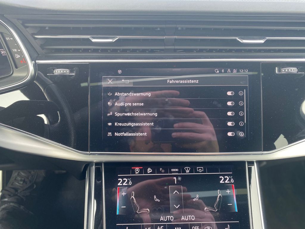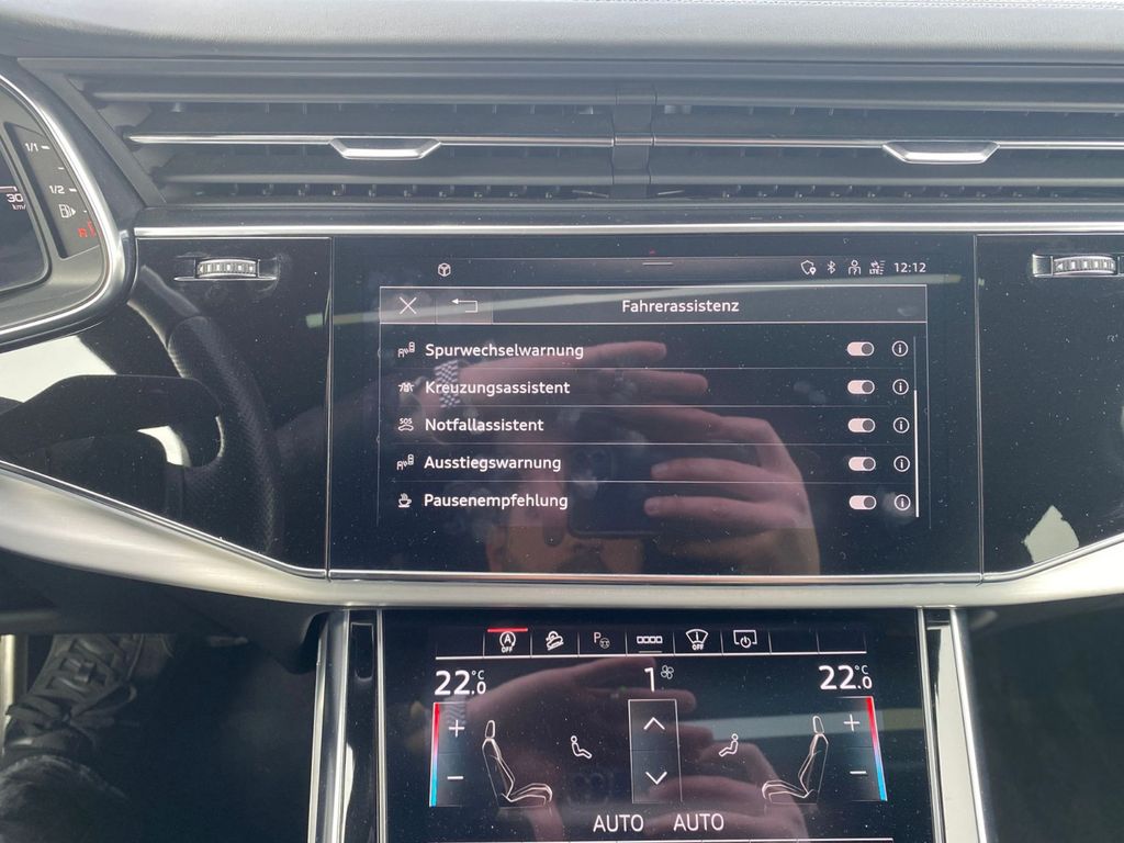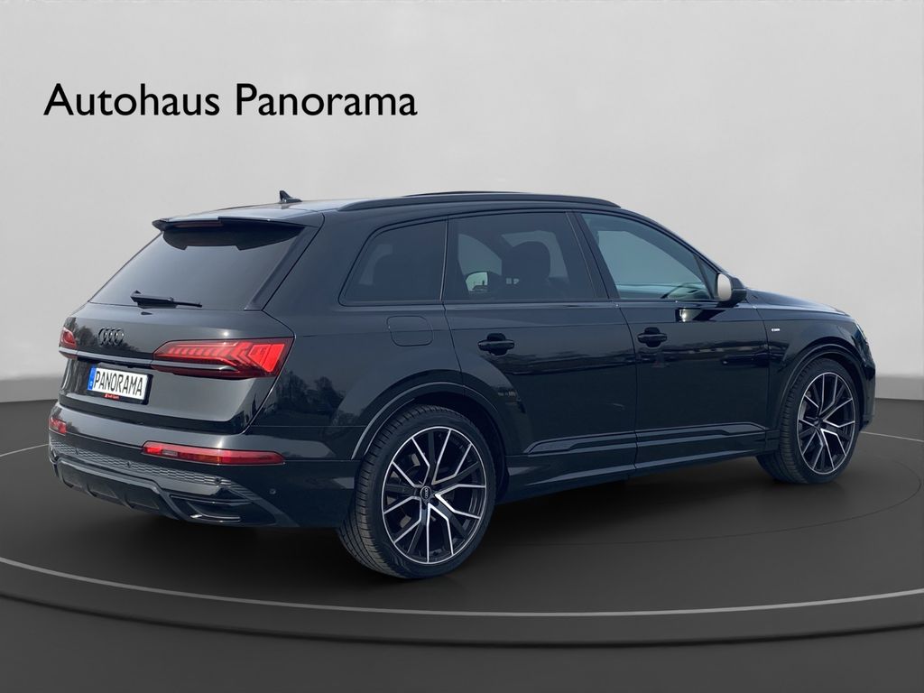 3.Sitzreihe, Einzelsitze klappbar (2 Sitzplätze), Allradlenkung, Assistenz-Paket Parken, Assistenz-Paket Stadt, Assistenz-Paket Tour, Audi Smartphone Interface, Ausstattungs-Paket: S line Sport / Plus, Außenspiegel elektr. verstell-, heiz- und anklappbar, mit Abblendautomatik und Memory, Bluetooth-Freisprecheinrichtung mit Spracherkennung (Audi Phone Box), Dachreling schwarz, Diebstahlsicherung für Räder (Felgenschlösser), Head-up-Display, Innenausstattung: Interieurelemente in Leder oben, Kombiinstrument digital (virtual cockpit plus), Kontur / Ambientebeleuchtungs-Paket (plus), Kraftstofftank: 85 Ltr., Lenkrad heizbar (Leder - 3-Speichen) mit Multifunktion plus, LM-Felgen 10x22 (5-V-Speichen, Stern-Design, schwarz, glanzgedreht), Matrix-LED-Scheinwerfer, Metallic-Lackierung, Optik-Paket schwarz, Panoramadach vorn elektrisch, hinten fest, Servoschliessung für Türen, Sitzbezug / Polsterung: Leder Valcona mit Logo-Prägung in Vordersitzlehnen, Sitze vorn elektr. verstellbar (links mit Memory), Sound-System Bang & Olufsen, Sperrdifferential, Verglasung hinten abgedunkelt (Privacyverglasung)