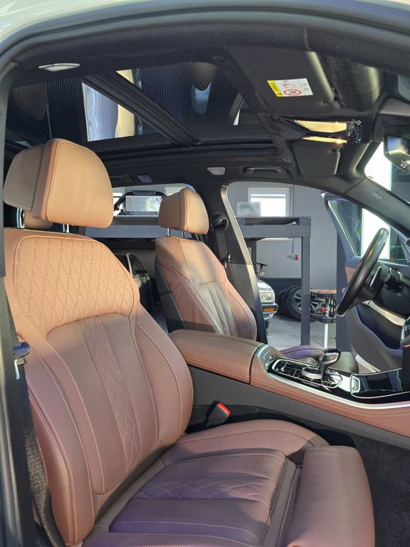 * Exklusives Interieur: BMW Individual Leder Merino Coffee , Massagefunktion & Sitzbelüftung vorn, Sitzheizung (vorn/hinten), Glasapplikationen CraftedClarity und Panorama-Glasdach Sky Lounge. AmbientAir Paket.