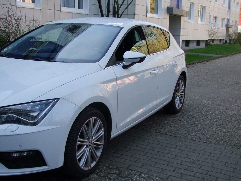 8 Lautsprecher, Ablagetasche an Vordersitzlehnen, Airbag Beifahrerseite abschaltbar, Airbag Fahrer-/Beifahrerseite, Antriebs-Schlupfregelung (ASR), Außenspiegel elektr. verstell-, heiz- und anklappbar, beide, Außenspiegel mit Spiegelabsenkung, Außenspiegel und Türgriffe außen in Wagenfarbe, Blinkleuchten LED in Außenspiegel integriert, Bordcomputer, Bremsassistent, Elektron. Differentialsperre (EDS), Fahrassistenz-System: Berganfahr-Assistent (Hill-Holder), Fahrassistenz-System: Berganfahr-Assistent und Elektron. Differentialsperre, Fahrassistenz-System: Fahrprofilauswahl (SEAT Drive Profile), Fensterheber elektrisch hinten, Handschuhfach beleuchtet, Heckleuchten LED, Innenausstattung: Chrom-Applikationen, Isofix-Aufnahmen für Kindersitz, Karosserie: 5-türig, Klimaanlage Climatronic 2-Zonen, Knieairbag Fahrerseite, Kopf-Airbag-System, Kopfstützen hinten (3-fach), Kopfstützen vorn verstellbar, Lendenwirbelstütze Sitz vorn links, verstellbar, Lendenwirbelstütze Sitz vorn rechts, verstellbar, Lenkrad (Sport/Leder), LM-Felgen, Mittelkonsole vorn mit Mittelarmlehne, Ablagebox und Luftdüsen hinten, Motor 2,0 Ltr. 150 PS TDI, Reifenkontroll-Anzeige, Rücksitzlehne geteilt/klappbar (1/3-2/3), Schadstoffarm nach Abgasnorm Euro 6, Schalt-/Wählhebelgriff Leder, Seitenairbag, Seitenscheiben hinten und Heckscheibe abgedunkelt,