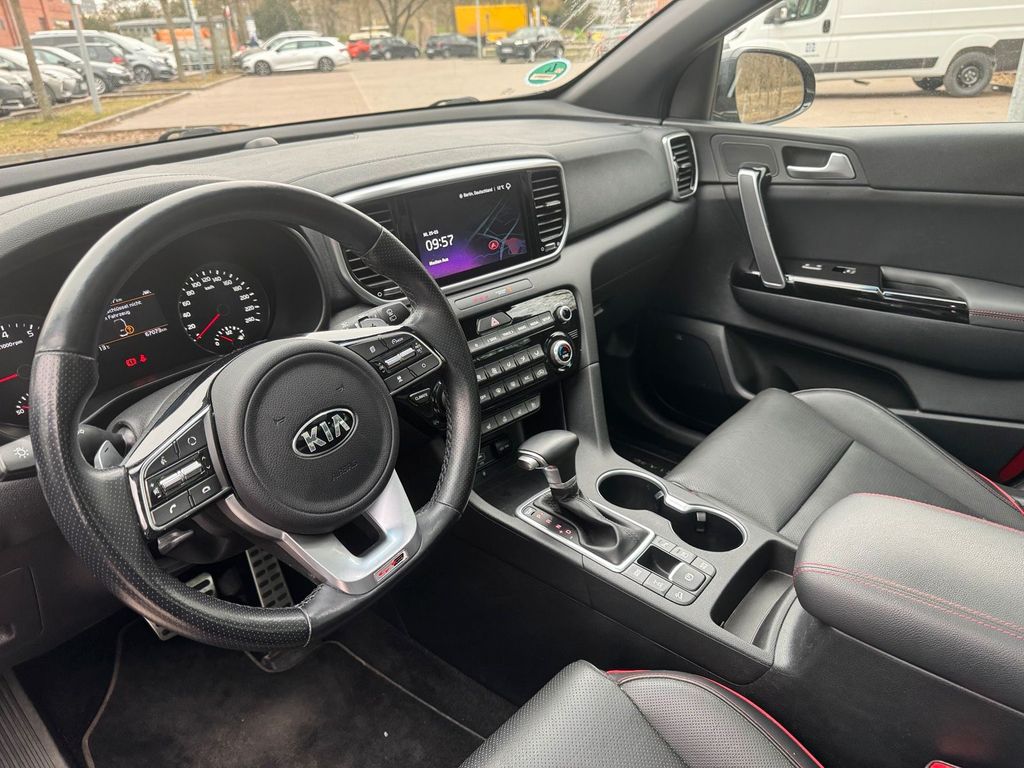 Ausstattung:GT-Line Paket, Lederausstattung, Navigationssystem (8 Zoll), Kia Navigationssystem mit Farbdisplay, Rückfahrkamera sowie Front- und Seitenkameras, Einparkhilfe vorne und hinten, Sitzheizung, ergonomischer Fahrersitz (Lordosenstütze), Fahrersitz höhenverstellbar, Keyless-Go (Smart-Key), elektrische Heckklappe (sensorgesteuert), induktive Smartphone-Ladefunktion, Soundsystem mit Subwoofer, Bluetooth Freisprecheinrichtung, USB und AUX Anschluss, Spurhalteassistent, Notbremsassistent (City), Verkehrszeichenerkennung, Fernlichtassistent, Drive Mode Select, 19 Zoll Leichtmetallfelgen (GT-Line), LED-Scheinwerfer, LED-Rückleuchten, LED-Nebelscheinwerfer, Privacy Verglasung (abgedunkelte Scheiben hinten), automatisch abblendender Innenspiegel, elektrisch verstell-, anklapp- und beheizbare Außenspiegel, Außenspiegel in Wagenfarbe mit integrierten Blinkern, Chromleisten an den Seitenfenstern, schwarzer Dachhimmel, Aluminium-Sportpedale, Aluminium-Einstiegsleisten, Dachreling, Dachspoiler, Anhängerkupplung, Panoramadach, Schiebedach, Wärmeschutzverglasung, beheizbare Heckscheibe, Heckscheibenwischer, Mittelarmlehne hinten mit Getränkehaltern, Lüftungsdüsen hinten (Fond), 12V Anschluss in der Mittelkonsole, USB Anschluss hinten, Wireless Charging, Sonnenblenden mit Spiegel und Beleuchtung, Nichtraucherfahrzeug.