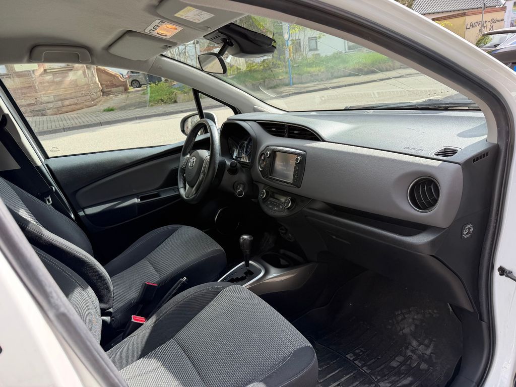 Weitere Ausstattung:3. Bremsleuchte, 6 Lautsprecher, Airbag Beifahrerseite abschaltbar, Airbag Fahrer-/Beifahrerseite, Audiosystem: Multimedia Toyota Touch 2, Außenspiegel elektr. verstell- und heizbar, Außenspiegel lackiert, Außentemperaturanzeige, Blinkleuchte in Außenspiegel integriert, Bremsassistent, Drehzahlmesser, Elektr. Bremskraftverteilung, Elektromotor 45 kW (Hybridantrieb), Freisprechanlage Bluetooth, Heckscheibenwischer, Innenausstattung: Aluminium / Chrom, Isofix-Aufnahmen für Kindersitz, Karosserie: 5-türig, Klimaautomatik 2-Zonen, Knieairbag Fahrerseite, Kopf-Airbag-System, Kühlergrill schwarz lackiert, mit Chromleiste, LM-Felgen, Motor 1,5 Ltr. - 55 kW 16V Hybrid, Projektor-Scheinwerfer, Reifen-Reparaturkit, Rückfahrkamera, Schadstoffarm nach Abgasnorm Euro 6, Schalt-/Wählhebelgriff Leder, Seitenairbag, Sitz vorn links höhenverstellbar, Sitzbezug / Polsterung: Stoff, Sonnenblenden mit Make-up-Spiegel, Toyota Safety Sense, Türgriffe außen Wagenfarbe, Universal-Schnittstelle (USB-/ iPod-/ AUX-Anschluss)