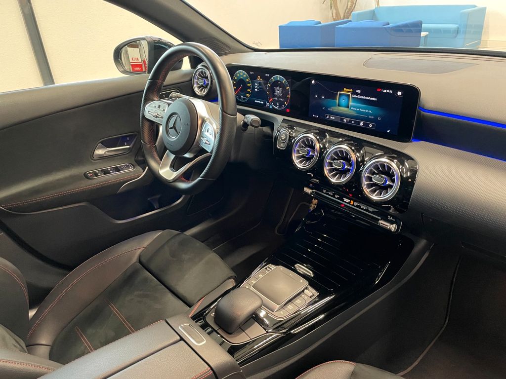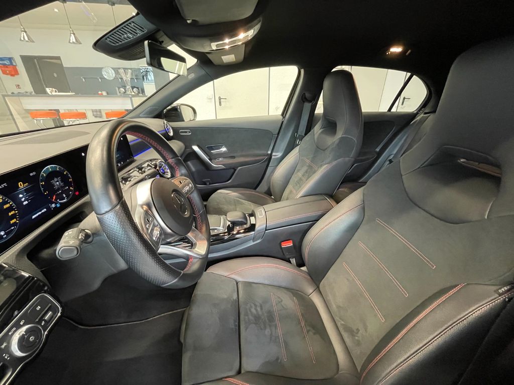 Airbag Beifahrerseite abschaltbar, Airbag Fahrer-/Beifahrerseite, Außenspiegel elektr. verstell- und heizbar, beide, Beckenairbag vorn (Pelvisbag), DAB-Tuner (Radioempfang digital), Dachspoiler, Design- und Ausstattungslinie Standard, Display-Paket, Edelstahlpedale Sportdesign, Fahrassistenz-System: Agility Select / Dynamic Select (Fahrmodusschalter), Fahrassistenz-System: aktiver Bremsassistent, Fahrassistenz-System: aktiver Spurhalteassistent, Fahrassistenz-System: Geschwindigkeitslimit-Assistent, Fahrzeug Setup (Onlinedienste / Apps), Fahrzeug-Monitoring (Fahrzeugortungssystem), Fensterheber elektrisch vorn + hinten, Fußmatten AMG, Gepäcknetz / Tasche an Vordersitzlehne, Getränkehalter vorn (doppelt), Innenhimmel schwarz, Karosserie: 5-türig, Keyless Go Startanlage, Klimaautomatik (Thermatic), Knieairbag Fahrerseite, Kommunikationsmodul (LTE) Vorbereitung Mercedes me connect, Kopf-Airbag-System (Windowbag), Kraftstofftank: vergrößert, Lenkrad (Sport) mit Multifunktion, Licht- und Sicht-Paket, LM-Felgen, Mercedes-Benz Notrufsystem, Motor 2,0 Ltr. - 225 kW KAT, Multimediasystem MBUX (Digitales Multimedia-System), Reifendruck-Kontrollsystem, Rücksitzlehne geteilt / klappbar, Schadstoffarm nach Abgasnorm Euro 6d, Seitenairbag (Sidebag) vorn, Sicherheitsgurte rot, Sitz-Komfort-Paket, Sitzbezug / Polsterung: Ledernachbildung Artico / Dinamica, Sport-Fahrwerk (AMG), Sportsitze vorn, Sprachbediensystem Erweiterte Funktionen (MBUX), Start/Stop-Anlage, Styling-Paket (AMG / Exterieur), USB-Anschluss im Fond, Ambiente-Beleuchtung, Sitzheizung vorn, Regensensor