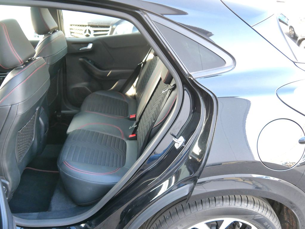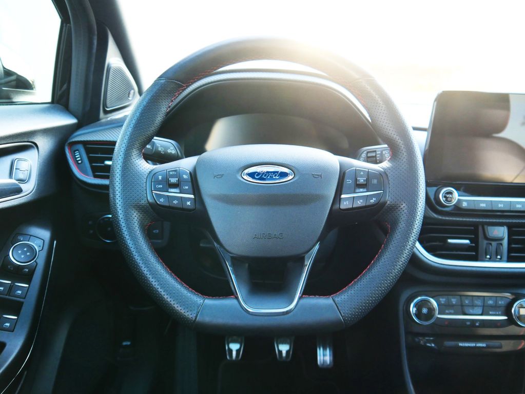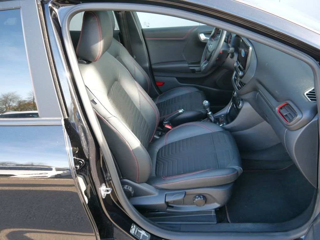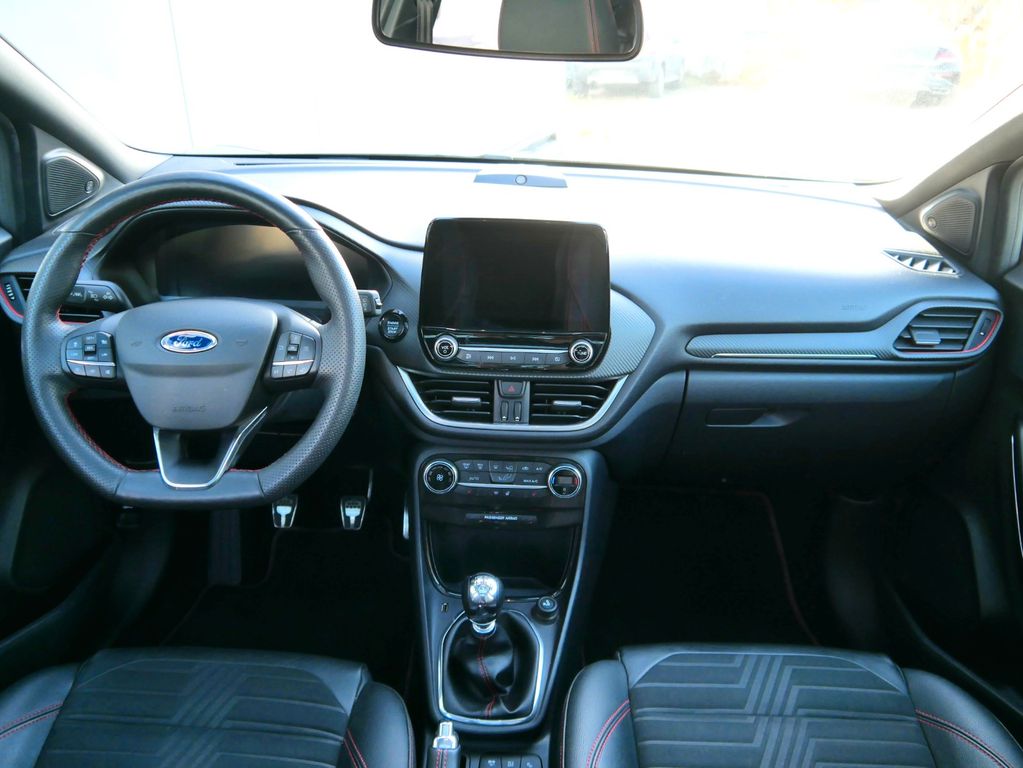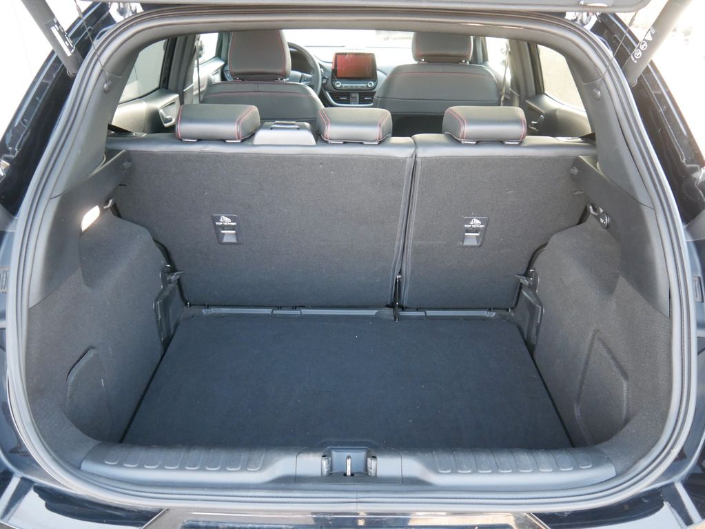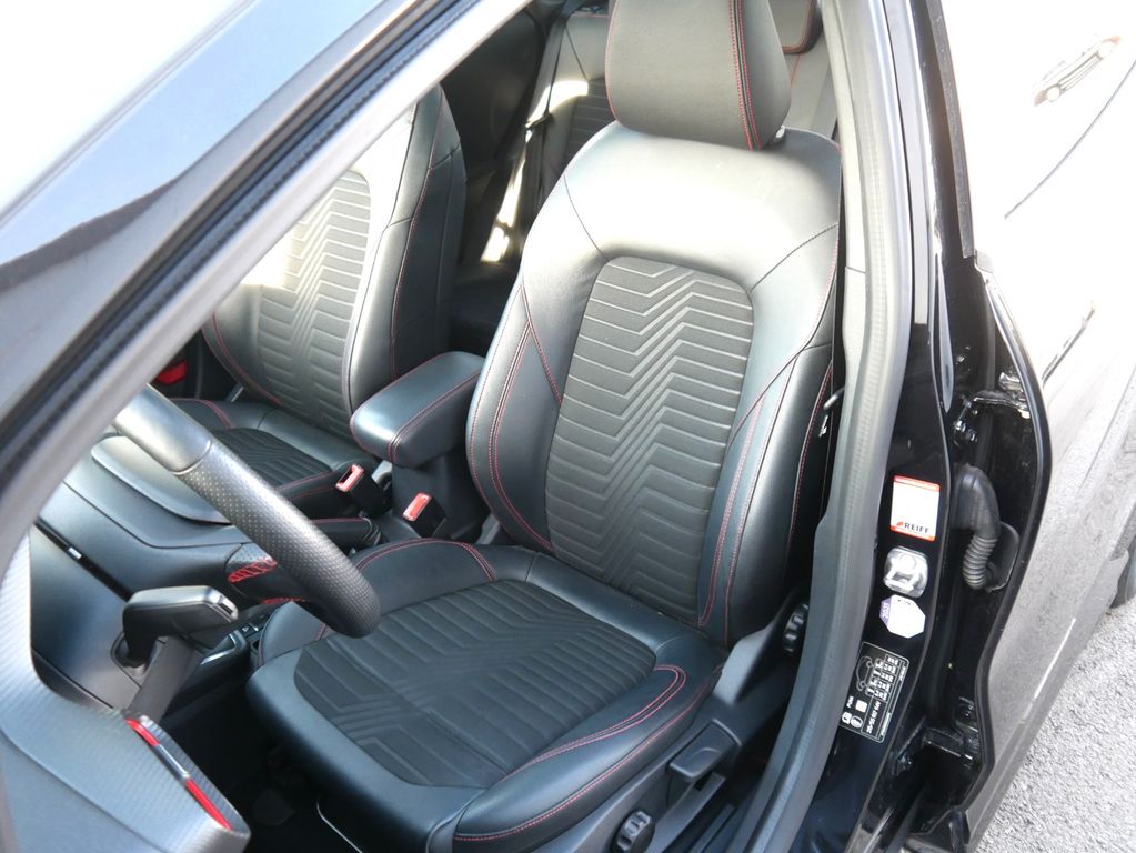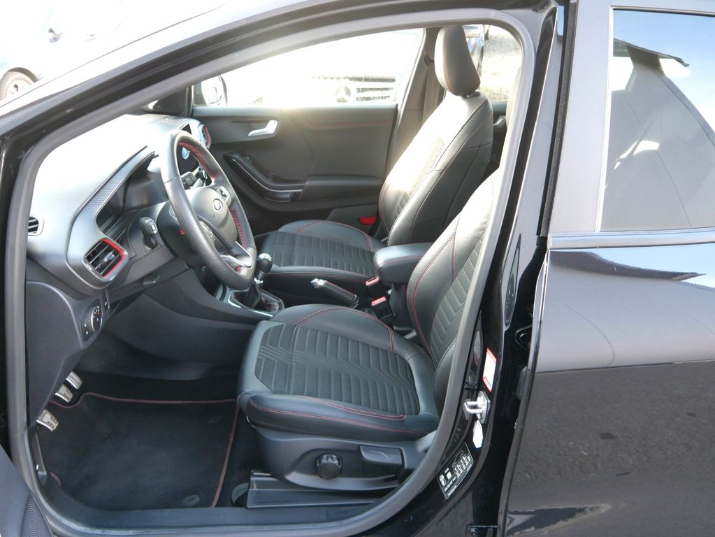 Ambiente-Beleuchtung vorn (LED), Antischlupfregelung (ASR), Audio-Navigationssystem Ford mit AppLink, Außenspiegel elektr. anklappbar, Außenspiegel elektr. verstell- und heizbar, Body-Styling-Paket, Dachhimmel Stoff, dunkel, Eco-Anzeige für verbrauchsoptimiertes Fahren (EcoCoach), Einparkhilfe hinten, Fahrassistenz-System: Berganfahr-Assistent (Hill-Holder), Fahrassistenz-System: Falschfahrer-Warnfunktion, Fahrassistenz-System: Fernlichtassistent (Scheinwerfer mit Abblendautomatik), Fahrassistenz-System: Notbrems-Assistent, Fahrassistenz-System: Post-Collision-System, Fahrassistenz-System: Pre-Collision-System, Fahrassistenz-System: Spurhalteassistent mit Müdigkeitserkennungs-Sensor, Fahrassistenz-System: Verkehrsschildassistent, Farbdisplay für Bordcomputer, Fensterheber elektrisch vorn + hinten mit Komfortschließung, FordPass Connect inkl. eCall, Fußmatten Teppich, Getriebe 6-Gang - Typ: 6MX65, Heckleuchten LED, Induktionsladeschale für mobile Endgeräte, Innenraumfilter: Staub- und Pollenfilter, Intelligent Protection System (IPS), Intelligenter Geschwindigkeits-Begrenzer, Isofix-Aufnahmen für Kindersitz, Karosserie: 5-türig, Kombiinstrument Digitalanzeige 12,3 Zoll, Komfort-Paket, Kopfstützen hinten mechan. verstellbar (3 Stück), Laderaumboden variabel (Ford Megabox), Lendenwirbelstütze vorn, Lenkrad (Sport/Leder, ST), Lenkrad mit Schaltwippen, Lenksäule (Lenkrad) höhen-/längsverstellbar, LM-Felgen, Mild-Hybrid 114 kW (Motor 1,0 Ltr. - 114 kW EcoBoost), My Key (2. Fahrzeugschlüssel programmierbar), Nebelscheinwerfer LED, Otto-Partikelfilter (OPF), Pedale Aluminium, Radstand 2588 mm, Reifen-Reparaturkit, Reifendruck-Kontrollsystem, Rücksitzlehne geteilt/klappbar (60:40), Schadstoffarm nach Abgasnorm Euro 6d-TEMP, Scheinwerfer-Assistent mit Tag-/Nachtsensor, Sitzbezug / Polsterung: Stoff/Leder, Sitze vorn höhenverstellbar, Sonnenblende links mit Spiegel (beleuchtet), Sonnenblende rechts mit Spiegel (beleuchtet), Sport-Fahrwerk, Sportsitze vorn, Standard Variante, Start/Stop-Anlage, Türgriffe außen Wagenfarbe, Verglasung hinten abgedunkelt (Privacy Glass)