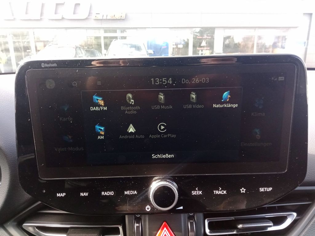 6 Lautsprecher, Ablagetasche an Vordersitzlehnen, Airbag Beifahrerseite, Airbag Beifahrerseite abschaltbar, Airbag Fahrerseite, Aktives Bremslicht (ESS), Audiosystem: Radio RDS, Außenspiegel elektr. verstell- und heizbar, beide, Außenspiegel lackiert, Blinkleuchte in Außenspiegel integriert, Bremsassistent, Dachspoiler, Einschaltautomatik für Fahrlicht / Lichtsensor, Elektr. Bremskraftverteilung, Elektron. Stabilitätskontrolle (ESC) mit Bremsassistent, Fahrassistenz-System: aktiver Spurhalteassistent (LKAS, Lane Keep Assist System), Fahrassistenz-System: Aufmerksamkeits-Assistent, Fahrassistenz-System: Autonome Notbremsfunktion inkl. Frontkollisionswarnung (FCA), Fahrassistenz-System: Berganfahrhilfe, Fahrassistenz-System: Einparkhilfe vorn und hinten, Fahrassistenz-System: Fahrprofilauswahl (Drive Mode), Fahrassistenz-System: Fernlichtassistent, Fahrassistenz-System: Sicherheitssystem mit automatischem Notruf (ERA GLONASS / eCall), Fensterheber elektrisch hinten, Fensterheber elektrisch vorn und hinten, mit Auf-/Ab-Automatik, Freisprecheinrichtung Bluetooth, Frontscheibe mit Bandfilter oben, Frontscheibe wärmedämmend, Funktions-Paket, Gegenlenkunterstützung (Vehicle Stability Management, VSM), Gepäck-/Laderaumleuchte, Gepäckraumabdeckung / Rollo, Getriebe 7-Gang - Doppelkupplungsgetriebe DCT, Getränkehalter hinten, Getränkehalter vorn, Gurtstraffer, Heckscheibe heizbar, Induktionsladeschale für Smartphone, Isofix-Aufnahmen für Kindersitz, Karosserie: 5-türig, Klimaautomatik 2-Zonen, Kombi-Paket, Kopf-Airbag-System, Kopfstützen hinten verstellbar, Kühlergrill mit Chromrand, Kühlergrill schwarz (glanzlackiert), Lendenwirbelstütze Sitz vorn links, elektr. verstellbar, Lenkrad heizbar, Lenkrad mit Schaltwippen, Leseleuchte, LM-Felgen, Mild-Hybrid 118 kW (Motor 1,5 Ltr. - 118 kW T-GDI), Mittelarmlehne hinten mit Getränkehalter, Modellpflege, Motorhaubenisolierung, Radioempfang digital (DAB+), Reifen-Reparaturkit, Reifendruck-Kontrollsystem, Rücksitzlehne geteilt/klappbar, Schadstoffarm nach Abgasnorm Euro 6d, Schalt-/Wählhebelgriff Leder, Scheibenbeschlagerkennung / Regelung, Seitenairbag vorn, Sicherheitsgurte vorn höhenverstellbar, Sitz vorn links höhenverstellbar, Sitz vorn rechts elektr. verstellbar, Sitz vorn rechts höhenverstellbar, Sitzbezug / Polsterung: Stoff, Sonnenblenden mit Spiegel (beleuchtet), Start/Stop-Anlage, Steckdose (12V-Anschluß) im Koffer-/Laderaum, Stoßfänger Wagenfarbe, Türgriffe außen Wagenfarbe, Türgriffe innen verchromt, USB-Anschluss + AUX-IN-Anschluss, Verglasung getönt, Warnanlage für Sicherheitsgurte, Fahrer-/Beifahrerseite