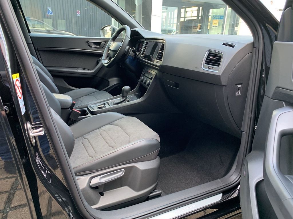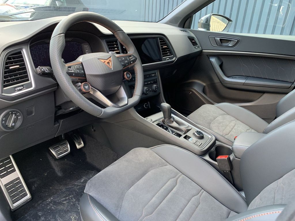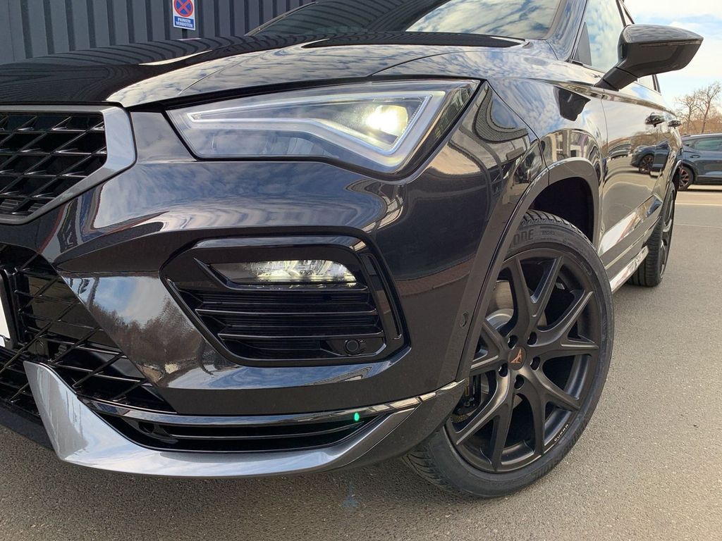 - (enthält: Fahrassistenz-Paket, Navigationssystem mit 92-Zoll Display, Climatronic mit Stauluftregelung, Full Link, Drive Profile, Spurhalteassistent, Verkehrszeichenerkennung, CUPRA Multifunktionslenkrad in Leder mit Motorstart- und CUPRA-Modus-Taste, Digitaler Radioempfang, Voll-LED-Scheinwerfer, Tagesfahrlicht mit Assistenzfahrlicht u. Coming- Leaving-Home Funktion manuell, Nebelscheinwerfer, Wireless Charger im Ablagefach der Mittelkonsole, Heckklappe elektrisch betätigt inkl. sensorgesteuerter Öffnung und Schließung und Kessy, Fernentriegelung zum Umklappen der Rücksitzbanklehne, Gepäcktrennnetz, 19-Zoll Leichtmetallräder "Exclusive Black Matt")