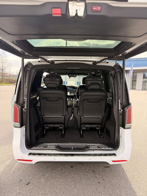 3. Bremsleuchte, Ablagenetz an Vordersitzlehne links, Ablagenetz an Vordersitzlehne rechts, Adaptives Bremslicht, Airbag Beifahrerseite, Airbag Fahrerseite, Aktiver Abstands-Assistent Distronic, Ambiente-Beleuchtung (64 Farben) Cockpit und Fond / Komplett, Anfahrhilfe (Berganfahr-Assistent), Antriebsart: Allradantrieb, Außenspiegel elektr. verstell- und heizbar, beide, Außenspiegel mit integrierter Blinkleuchte, Außenspiegel mit Totwinkel-Assistent, Außentemperaturanzeige, Avantgarde, Beleuchtung im Haltegriff Fond mit Lesespot, BlueEfficiency-Paket, Bodenbelag: Teppich im Fahrerraum, Bodenbelag: Teppich im Lade-/Fahrgastraum, DAB-Tuner (Radioempfang digital), Einschaltautomatik für Fahrlicht, Einstiegsgriff hinten, Einstiegsleuchten, Fahrassistenz-System: aktiver Bremsassistent, Fahrassistenz-System: aktiver Spurhalteassistent, Fahrassistenz-System: Attention-Assist (Müdigkeitserkennungs-Sensor), Fahrassistenz-System: Pannenmanagement, Fahrassistenz-System: Seitenwind-Assistent, Fahrassistenz-System: Verkehrszeichenerkennung, Fenster im Lade-/FG-Raum: - feststehend, hinten, Fenster im Lade-/FG-Raum: - feststehend, vorn links, Fenster im Lade-/FG-Raum: - feststehend, vorn rechts, Feststellbremse elektrisch, Feststeller Schiebetür (Aktiv), Fußraumbeleuchtung vorn, Generator 250 A, Getriebe Automatik GTronic - (9-Stufen), Getränkehalter hinten, Haltegriffe im Fond, Handschuhfach abschließbar, Heckscheibe aufstellbar, Hold-Funktion, Induktionsladeschale für Smartphone (Wireless Charging), Innenspiegel automatisch abblendbar, Karosserie/Aufbau: Bus, Kindersicherung, Kindersitzerkennung im Beifahrersitz (automatisch), Klimaautomatik Fond (Tempmatik), Kombiinstrument mit Variabler Anzeige (Widescreen Cockpit), Komfort-Klimaautomatik Thermotronik, Komfortschließung, Kommunikationsmodul Mercedes me connect (Internetbasierende Dienste), Kopf-Airbag-System (Windowbag), Kopf-Airbag-System (Windowbag) hinten, Kraftstofftank mit Falschbetankungsschutz, Kraftstofftank: 70 Ltr., Lastenverankerung / Verzurrösen, Lenkrad (Lenksäule mech. verstellbar), Lenkrad mit Multifunktion, Leuchtweitenregelung, Mercedes-Benz Notrufsystem, Mittenairbag vorn, Modellpflege (2) mit Code, Motor 2,0 Ltr. - 174 kW CDI KAT, Multibeam LED inkl. Fernlichtassistent Plus, Navigationssystem für Multimediasystem MBUX, Park-Paket mit 360° Kamera, PKW-Zulassung, PRE-SAFE-System, Radstand 3200 mm, Reifendruck-Kontrollsystem, Schadstoffarm nach Abgasnorm Euro 6e, Schiebetür Lade-/Fahrgastraum links, Schiebetür Lade-/Fahrgastraum rechts, Schulter-Becken-Airbag (Thorax-Pelvis-Sidebag) Beifahrerseite, Schulter-Becken-Airbag (Thorax-Pelvis-Sidebag) Fahrerseite, Servolenkung elektro-mechanisch, Sicherheitsgurt-System mit Warnanlage (Beifahrerseite), Sicherheitsgurt-System mit Warnanlage (Fahrerseite), Sitzausstattung: Schnellverriegelung für Sitzschienen-System, Sitzbezug / Polsterung: Leder Lugano, Sitze im Fahrerhaus: Beifahrersitz mit Lendenwirbelstütze, Sitze im Fahrerhaus: Beifahrersitz mit Sitztiefenverstellung, Sitze im Fahrerhaus: Fahrersitz mit Lendenwirbelstütze, Sitze im Fahrerhaus: Fahrersitz mit Sitztiefenverstellung, Sitze im Lade-/FG-Raum: 2.Reihe, 1 Einzelsitz links, Sitze im Lade-/FG-Raum: 2.Reihe, 1 Einzelsitz rechts, Sitze im Lade-/FG-Raum: Armlehnen, 2.Reihe, Einzelsitz links/rechts, Smartphone-Integration (Apple CarPlay und Android Auto), Sonnenblenden mit Spiegel (beleuchtet), Spiegel-Paket, Start/Stop-Anlage Motor, Steckdose (12V-Anschluß) im Fahrerhaus, Steckdose (12V-Anschluß) im Lade-/Fahrgastraum, Steckdosen (12V-Anschluß) im Lade-/Fahrgastraum, 2-fach, Stoßfänger und Anbauteile in Wagenfarbe lackiert, Touchpad (Mittelkonsole), Umfeldleuchte in Heckklappe, Vlies-Batterie 92 Ah, Vorrüstung Remote Service Plus, Warmluftkanal zum Lade-/Fahrgastraum, Wartungsintervall-Anzeige Assyst, Wärmeschutzverglasung, Zuheizer, Zul. Gesamtgewicht 3,10 t , Innenspiegel automatisch abblendend