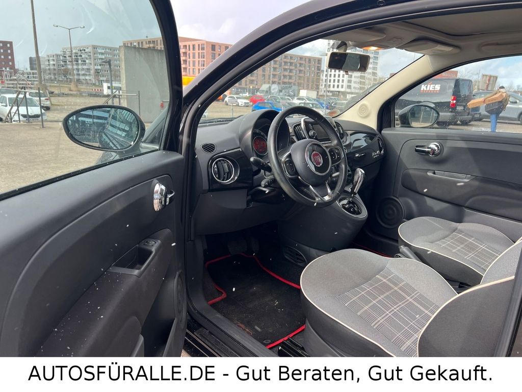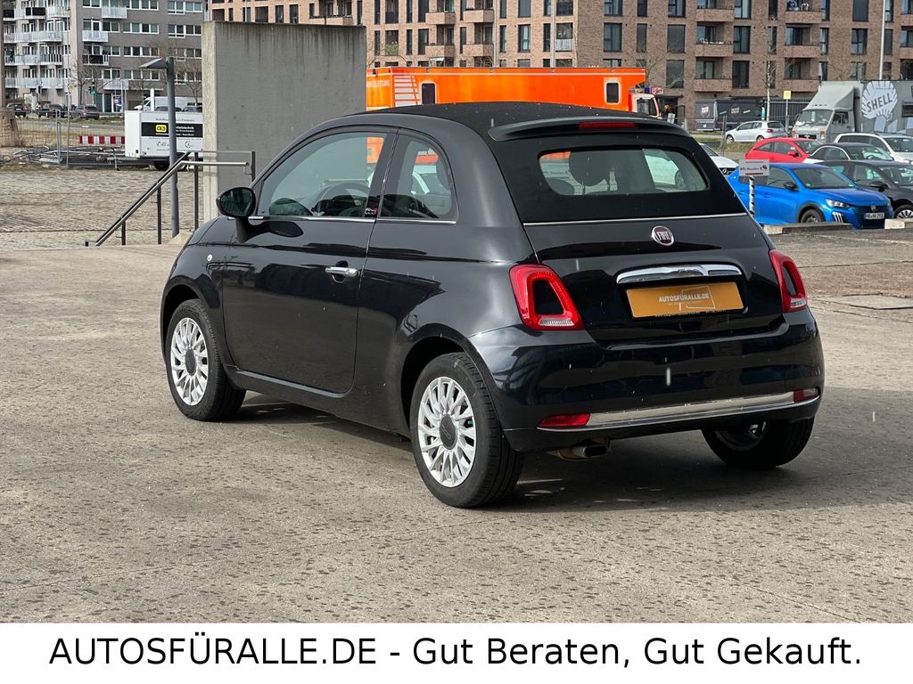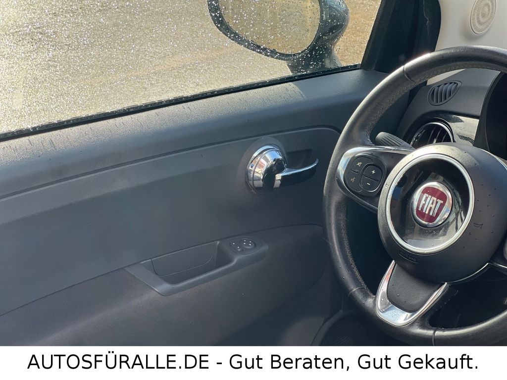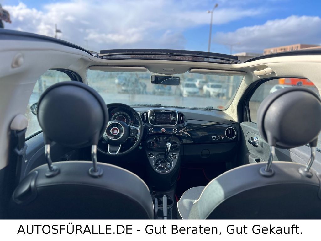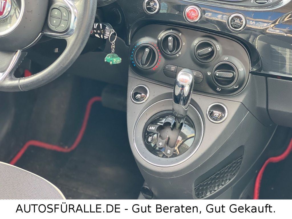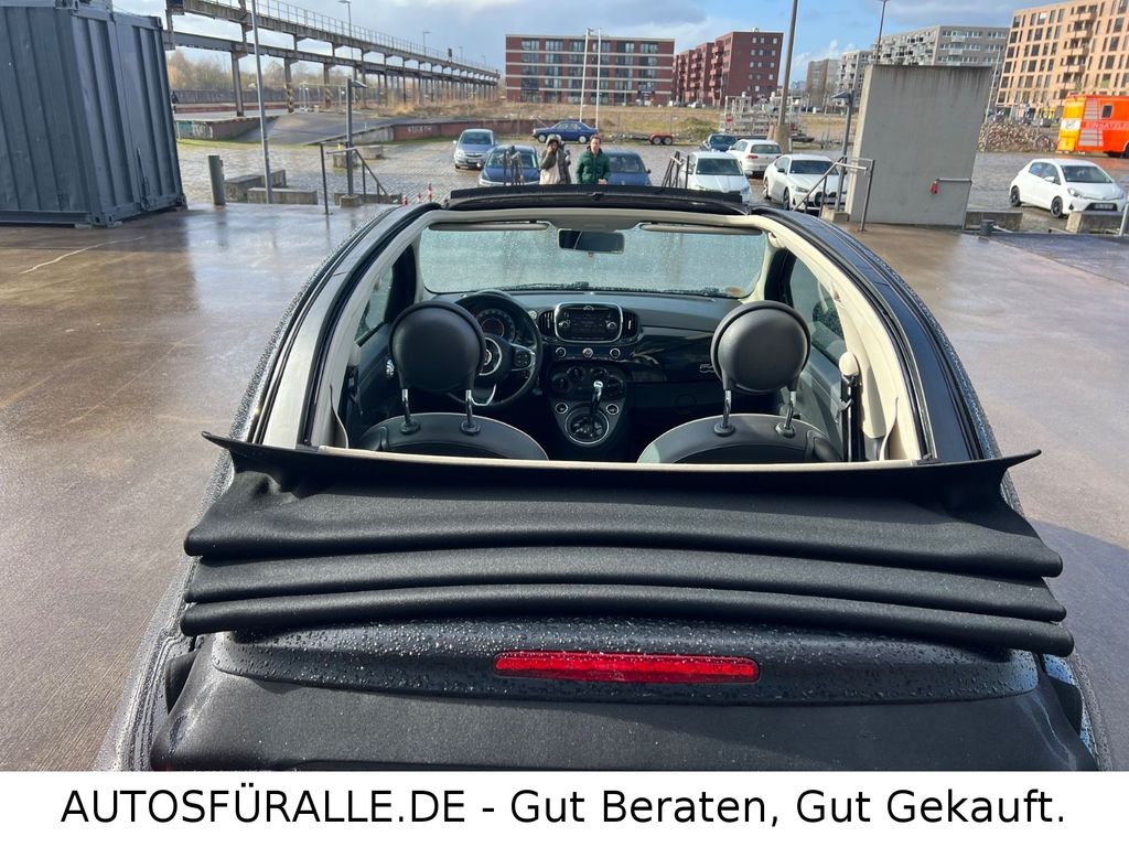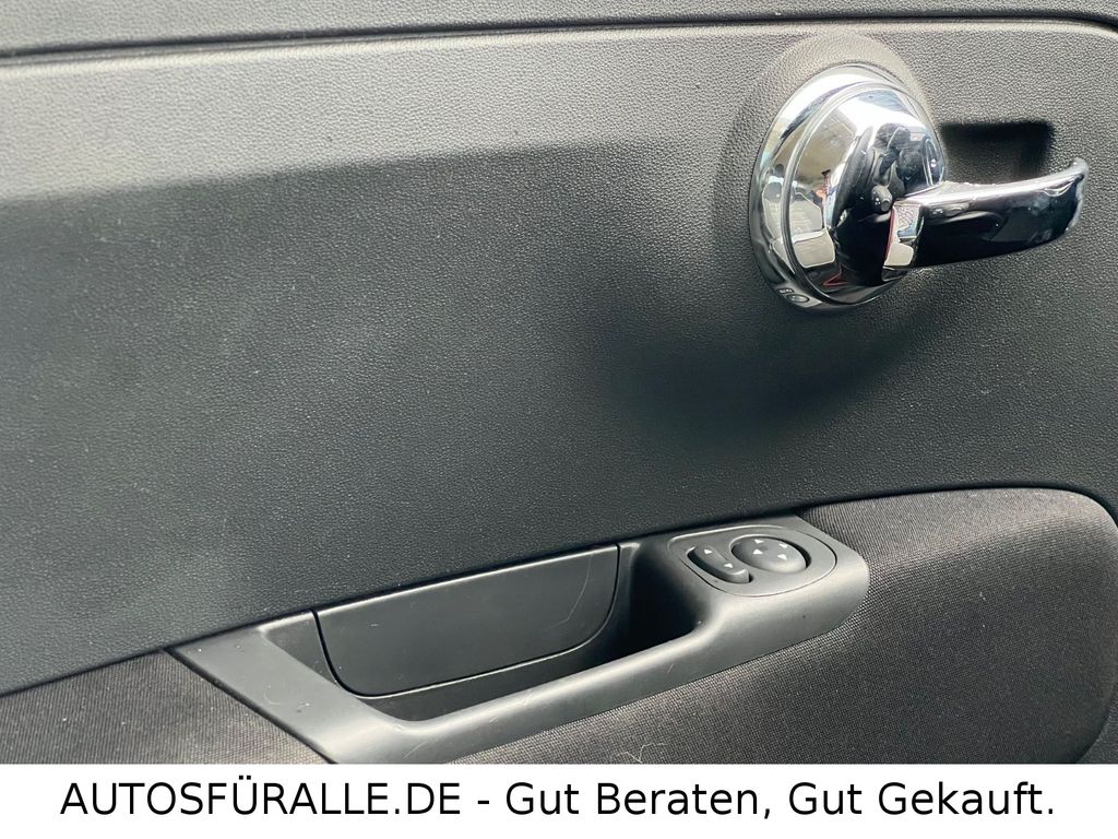 Fiat 500C Cabrio Automatik Kilma Faltdach TOPEntdecken Sie diesen gepflegten FIAT 500 Cabrio aus dem Jahr 2017. Das Fahrzeug präsentiert sich in elegantem Schwarz mit Metallic-Lackierung und bietet mit seinem Automatikgetriebe ein komfortables Fahrerlebnis. Der sparsame 1,2-Liter-Benzinmotor mit 69 PS sorgt für agile Fahrleistungen bei gleichzeitig niedrigem Verbrauch – ideal für den Stadtverkehr und kleine Ausflüge. Die manuelle Klimaanlage, elektrische Fensterheber und elektrisch verstellbare Außenspiegel erhöhen den Fahrkomfort.