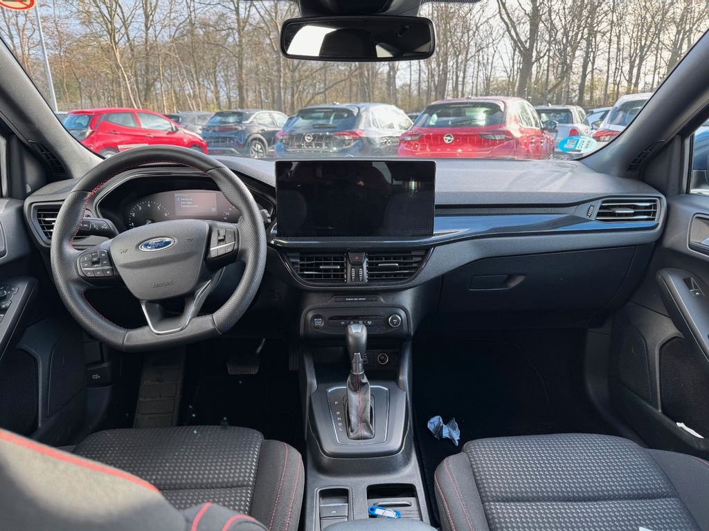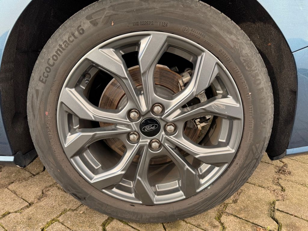 Airbag Beifahrerseite abschaltbar, Antischlupfregelung (ASR), Audio-Navigationssystem Ford SD (mit Ford SYNC 4 und Touchscreen-Farbdisplay), Außenspiegel elektr. anklappbar, Außenspiegel elektr. verstell- und heizbar, Blinkleuchte in Außenspiegel integriert, Body-Styling-Paket, Bord-/Verbrauchscomputer, Dachhimmel Stoff, dunkel, Dachreling schwarz, Dachspoiler Wagenfarbe, Dimmer Instrumentenbeleuchtung, Doppelendrohr Auspuffanlage, Elektr. Bremskraftverteilung (EBD), Fahrassistenz-System: Berganfahr-Assistent (Hill-Holder), Fahrassistenz-System: Notbrems-Assistent, Fahrassistenz-System: Post-Collision-System, Fahrassistenz-System: Pre-Collision-System, Fahrassistenz-System: Spurhalteassistent, Farbdisplay (8 Zoll), Farbdisplay für Bordcomputer, Fensterheber elektrisch vorn + hinten mit Komfortschließung, Fußmatten Teppich, Fußmatten Velours - vorn, Gepäckraumabdeckung / Rollo, Getriebe 7-Gang - Doppelkupplungsgetriebe, Innenraumfilter: Staub- und Pollenfilter, Innenspiegel mit Abblendautomatik, Intelligent Protection System (IPS), Intelligenter Geschwindigkeits-Begrenzer, Isofix-Aufnahmen für Kindersitz, Karosserie: 5-türig, Klimaautomatik 2-Zonen, Kopfstützen hinten mechan. verstellbar (3 Stück), Kopfstützen vorn 4-fach verstellbar, Laderaumboden verstellbar, Lenkrad (Sport/Leder, ST), Lenksäule (Lenkrad) höhen-/längsverstellbar, LM-Felgen, Mild-Hybrid 114 kW (Motor 1,0 Ltr. - 114 kW EcoBoost), Mittelkonsole Premium, Modellpflege, My Key (2. Fahrzeugschlüssel programmierbar), Nebelscheinwerfer LED, Parkbremse elektrisch mit Auto-Hold-Funktion, Parkpilotsystem vorn und hinten, Reifen-Reparaturkit, Reifendruck-Kontrollsystem, Rücksitzlehne geteilt/klappbar (60:40), Schadstoffarm nach Abgasnorm Euro 6d, Schalt-/Wählhebelgriff Aluminium, Schalt-/Wählhebelgriff Leder, Schaltpunktanzeige, Scheinwerfer LED, Scheinwerfer mit abgedunkelten Hintergrund, Scheinwerfer mit Ausschaltverzögerung, Scheinwerfer-Assistent mit Tag-/Nachtsensor, Sitz vorn links höhenverstellbar, Sonnenblende links mit Spiegel, Sonnenblende rechts mit Spiegel, Sport-Fahrwerk, Sportsitze vorn, Start/Stop-Anlage, Steckdose (12V-Anschluß) im Koffer-/Laderaum, Verglasung getönt, Warnanlage für Sicherheitsgurte hinten, Warnanlage für Sicherheitsgurte vorn, Ehem. EU Mietwagen